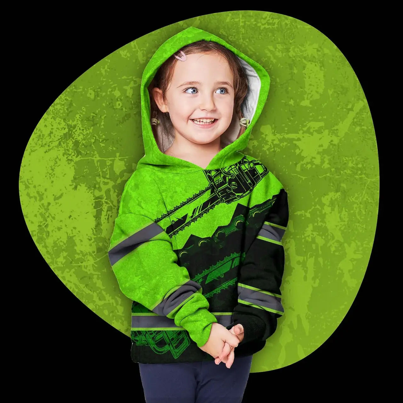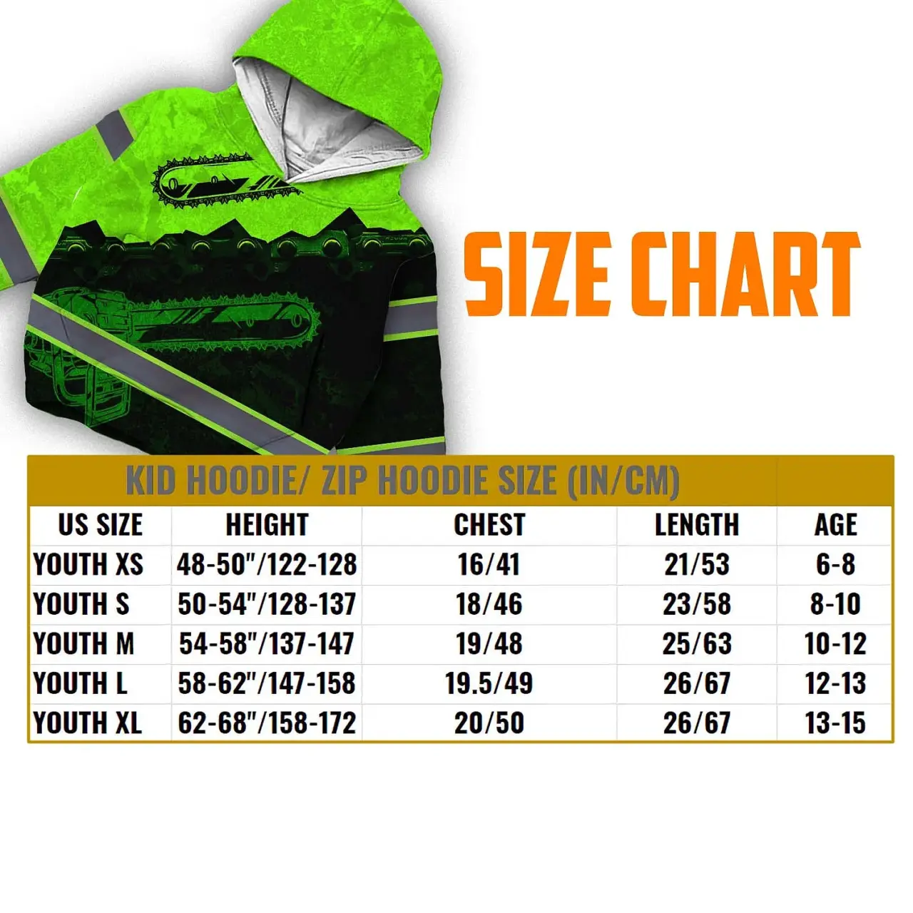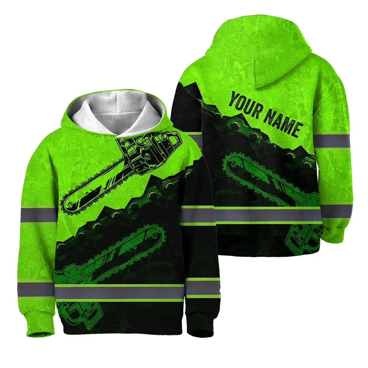 Hi Vis Hoodie Reflective Tapes Green Neon Chainsaw Logger Custom Name For Kids