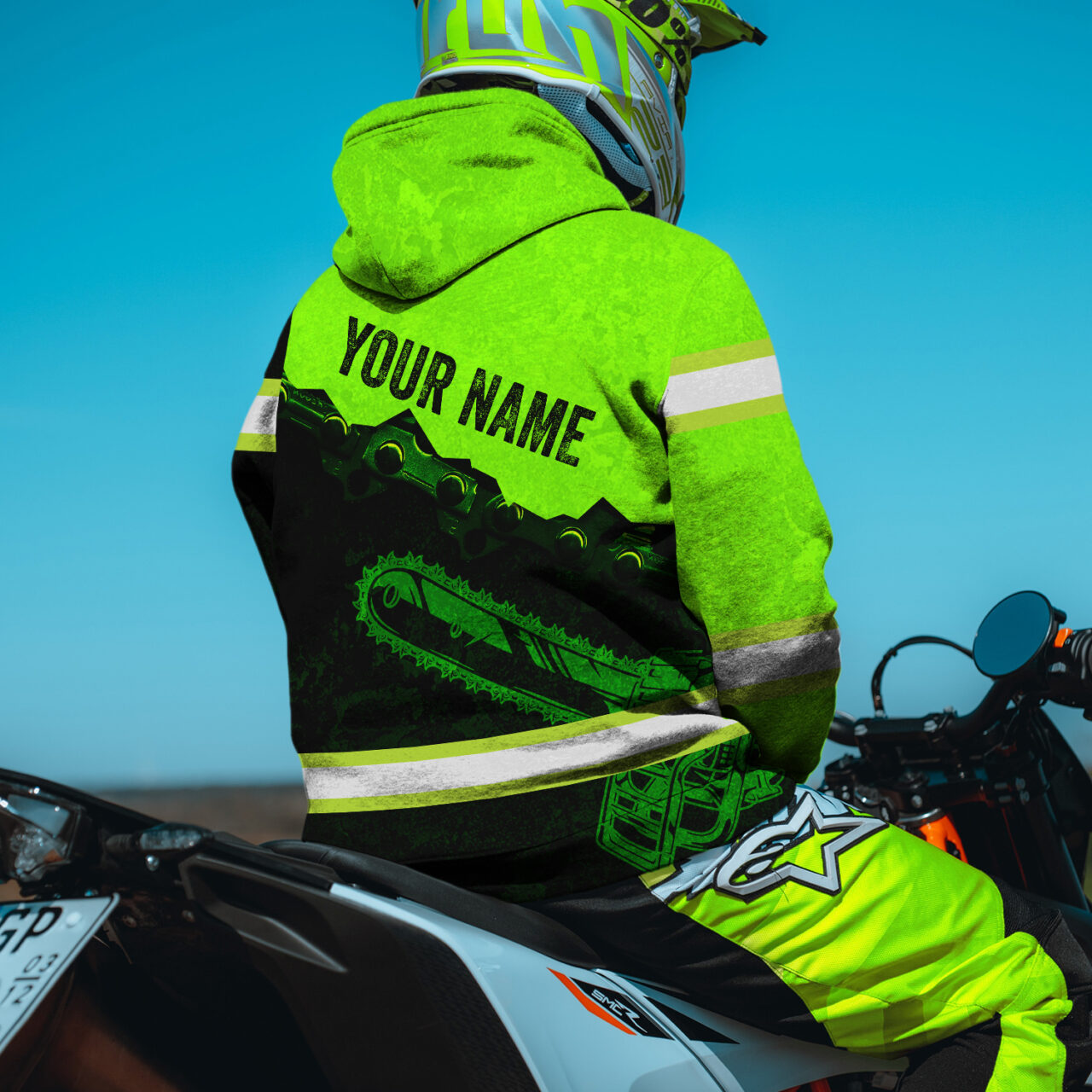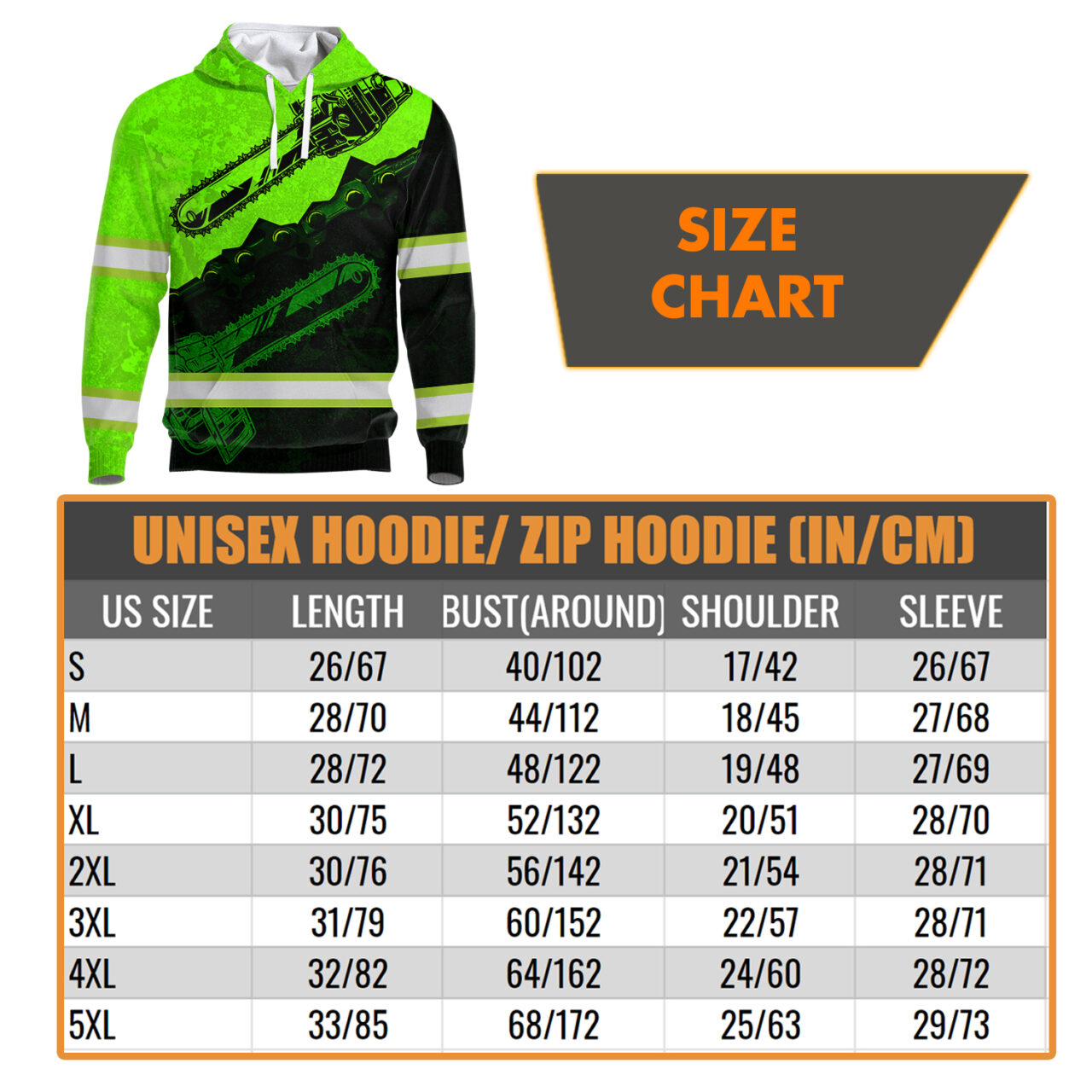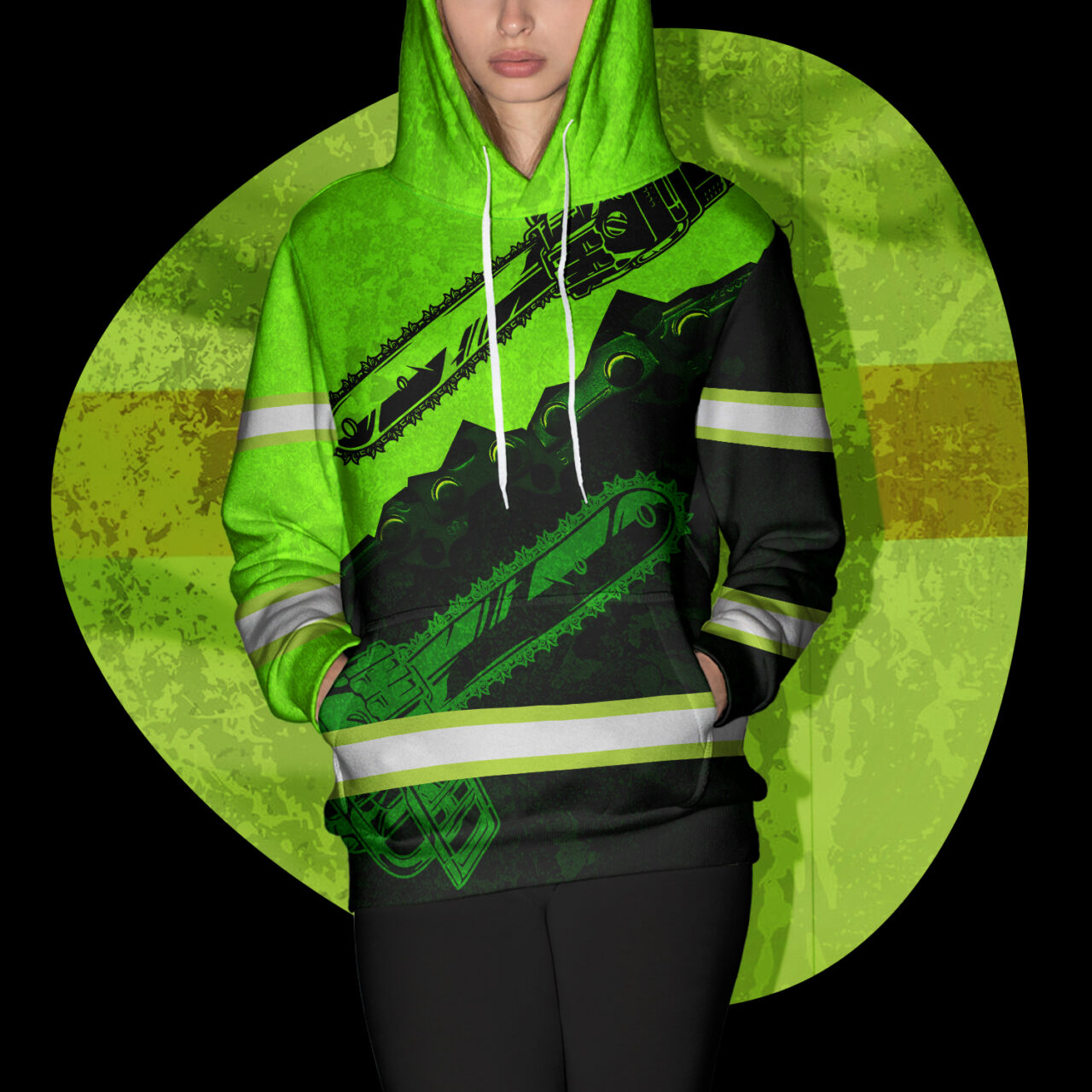 Hi Vis Hoodie Reflective Tapes Green Neon Chainsaw Logger Custom Name Safety Workwear
