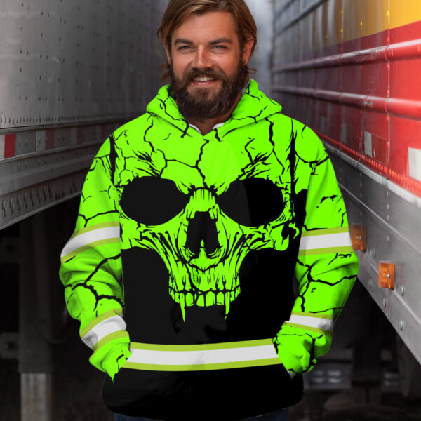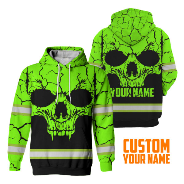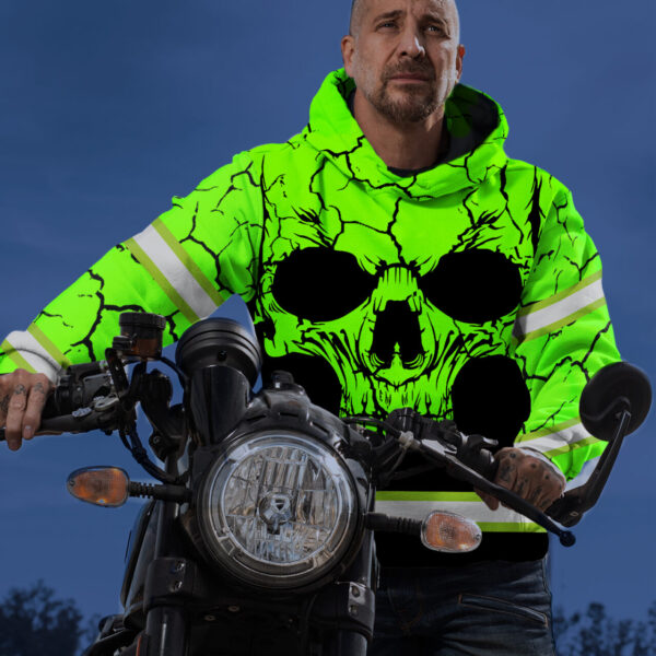 Hi Vis Hoodie Reflective Tapes Green Neon Crack Skull Custom Name Safety