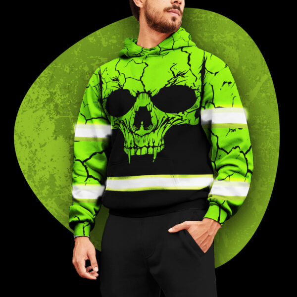 Hi Vis Hoodie Reflective Tapes Green Neon Crack Skull Custom Name Safety quantity