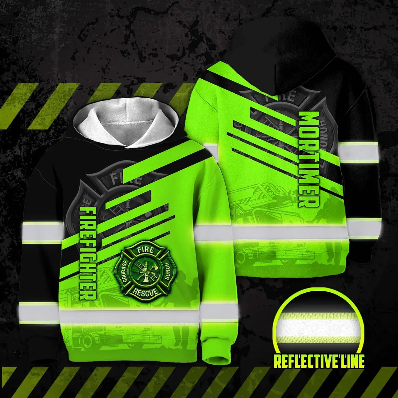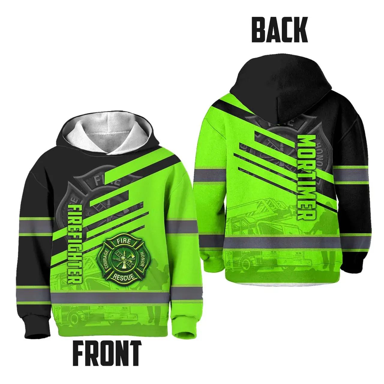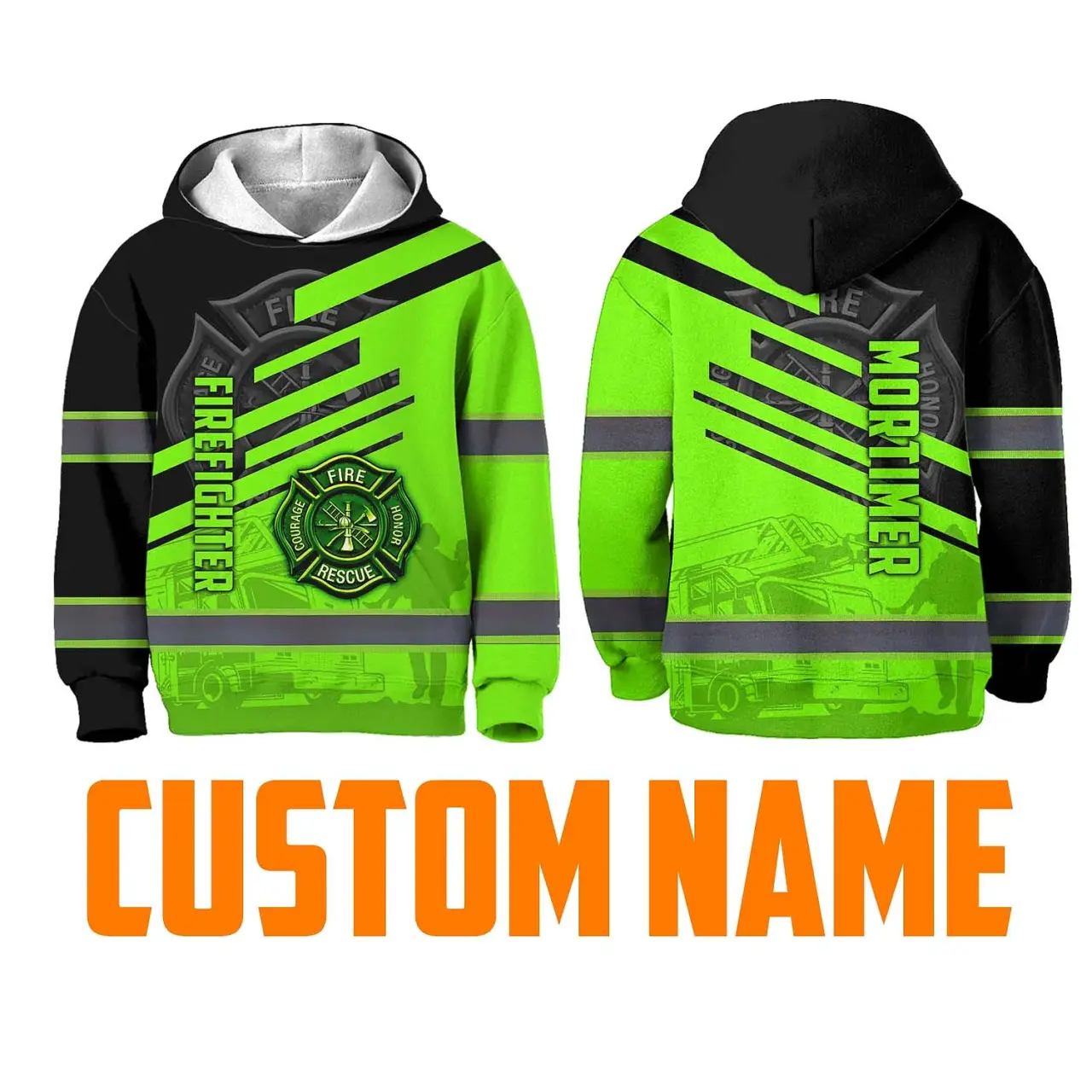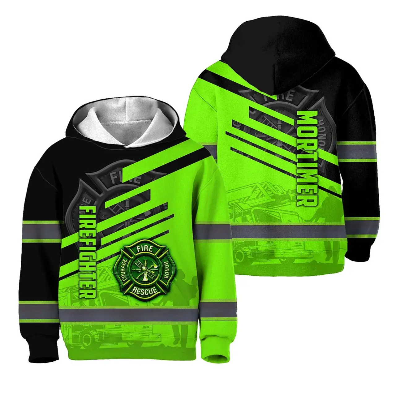 Hi Vis Hoodie Reflective Tapes Green Neon Firefighter Custom Name For Kids
