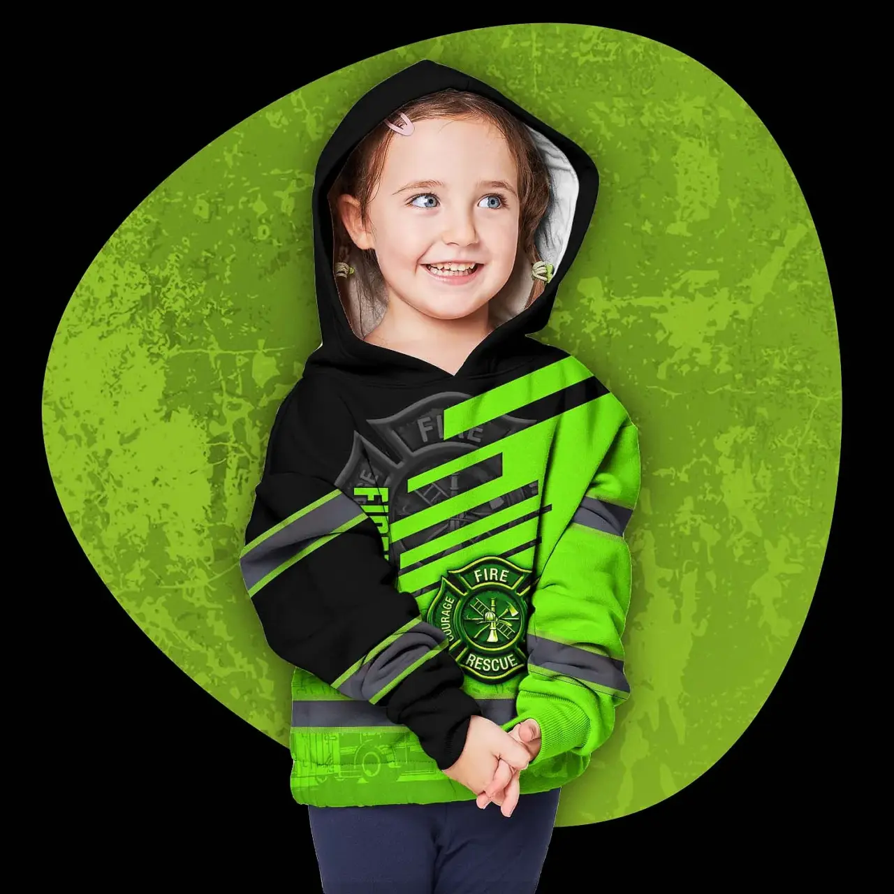 Be the first to review “Hi Vis Hoodie Reflective Tapes Green Neon Firefighter Custom Name For Kids”