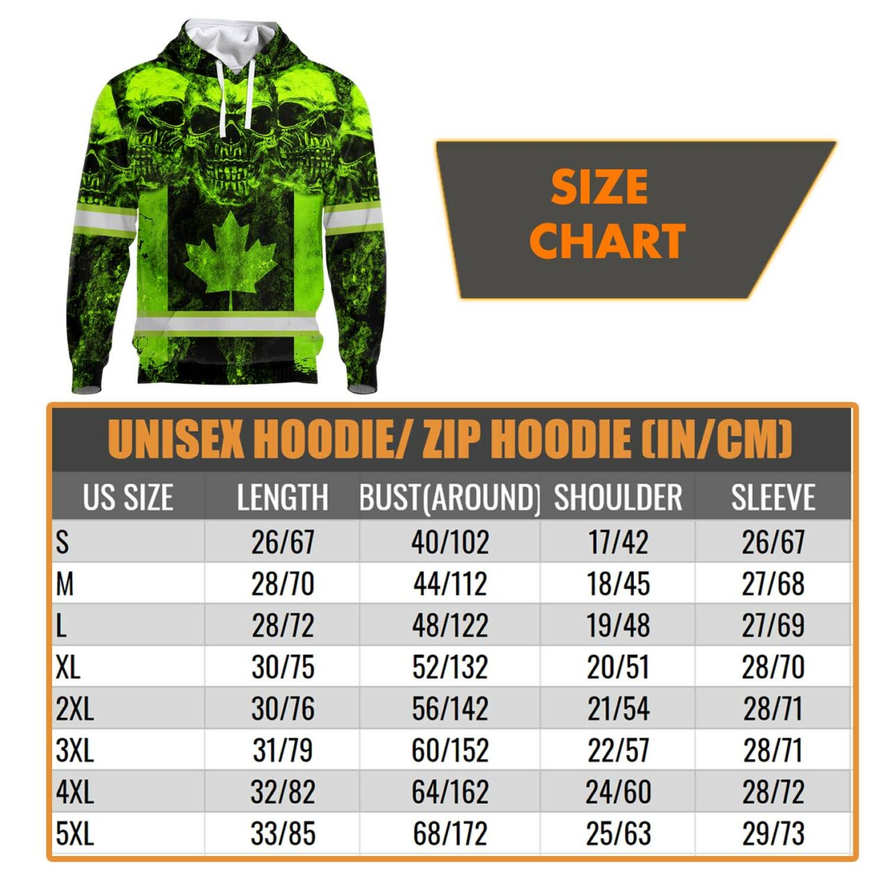 Categories: Hi Vis Canadian Products, Hi Vis Hoodies, Hi Vis Skull Products