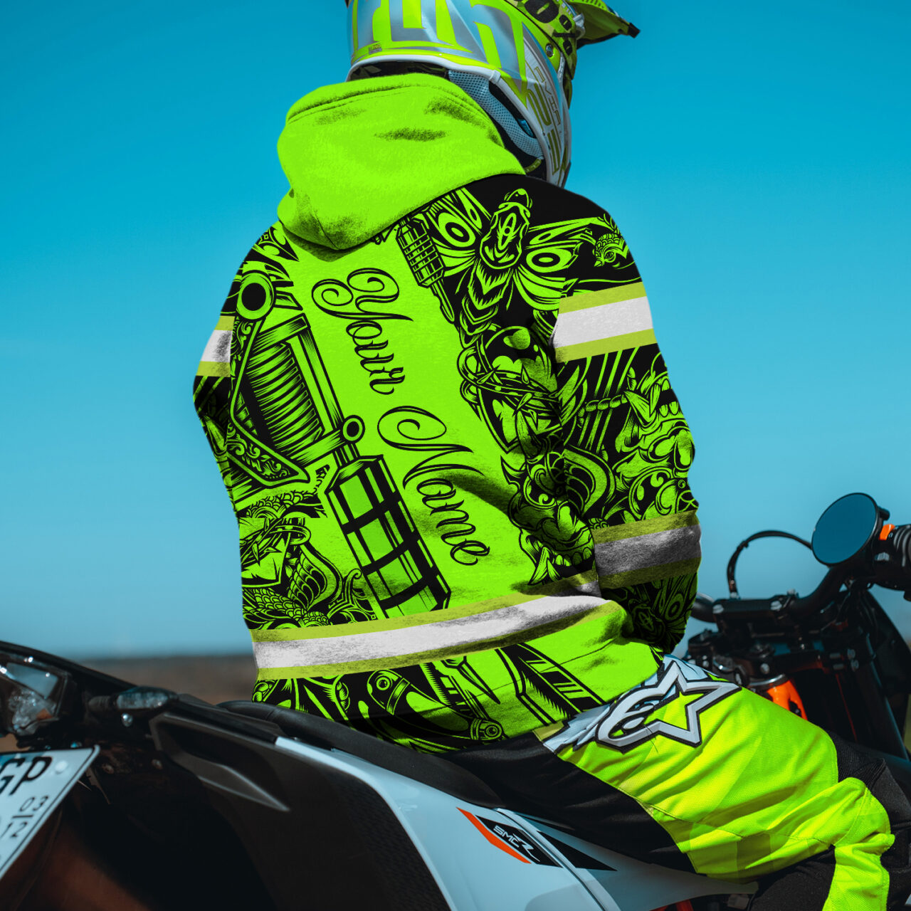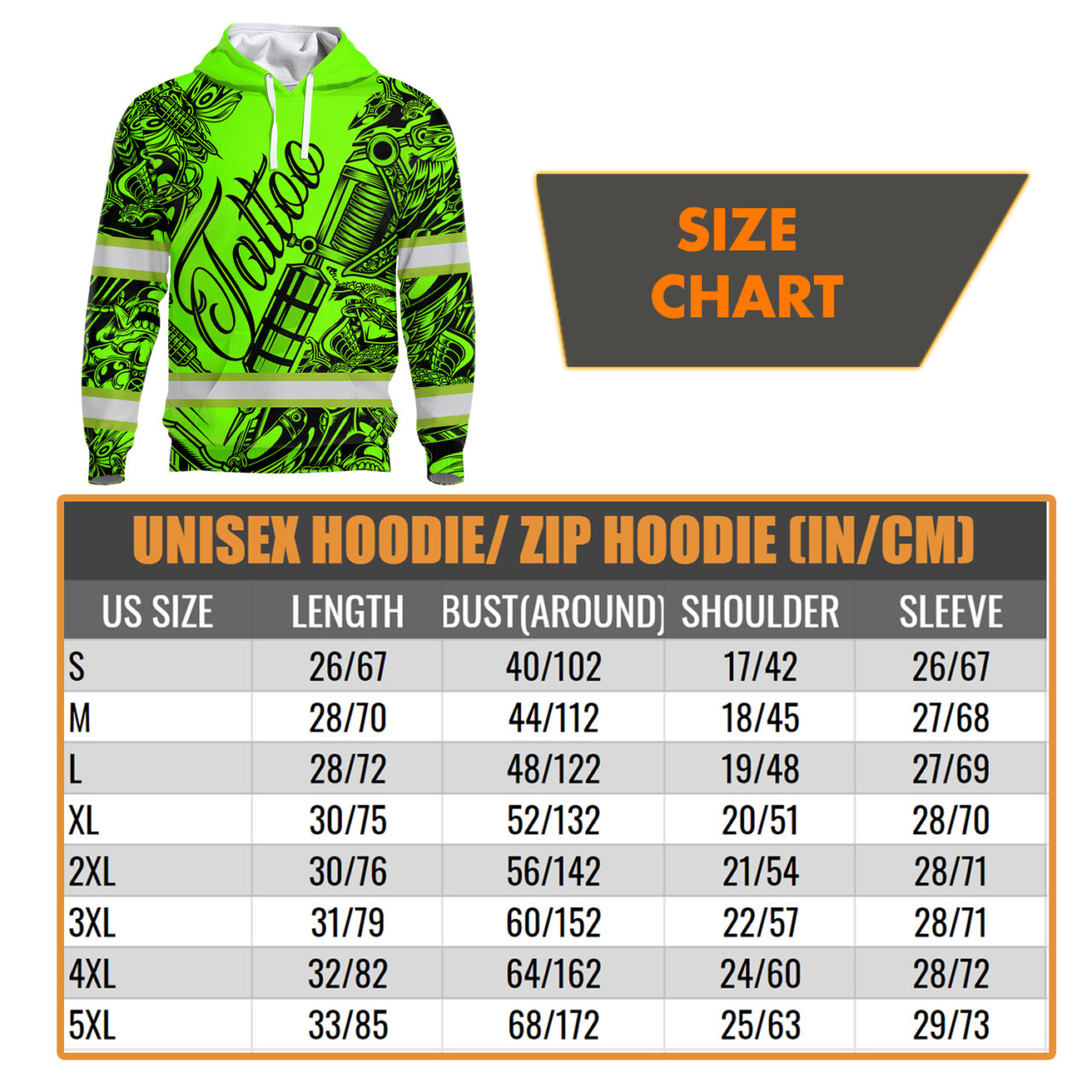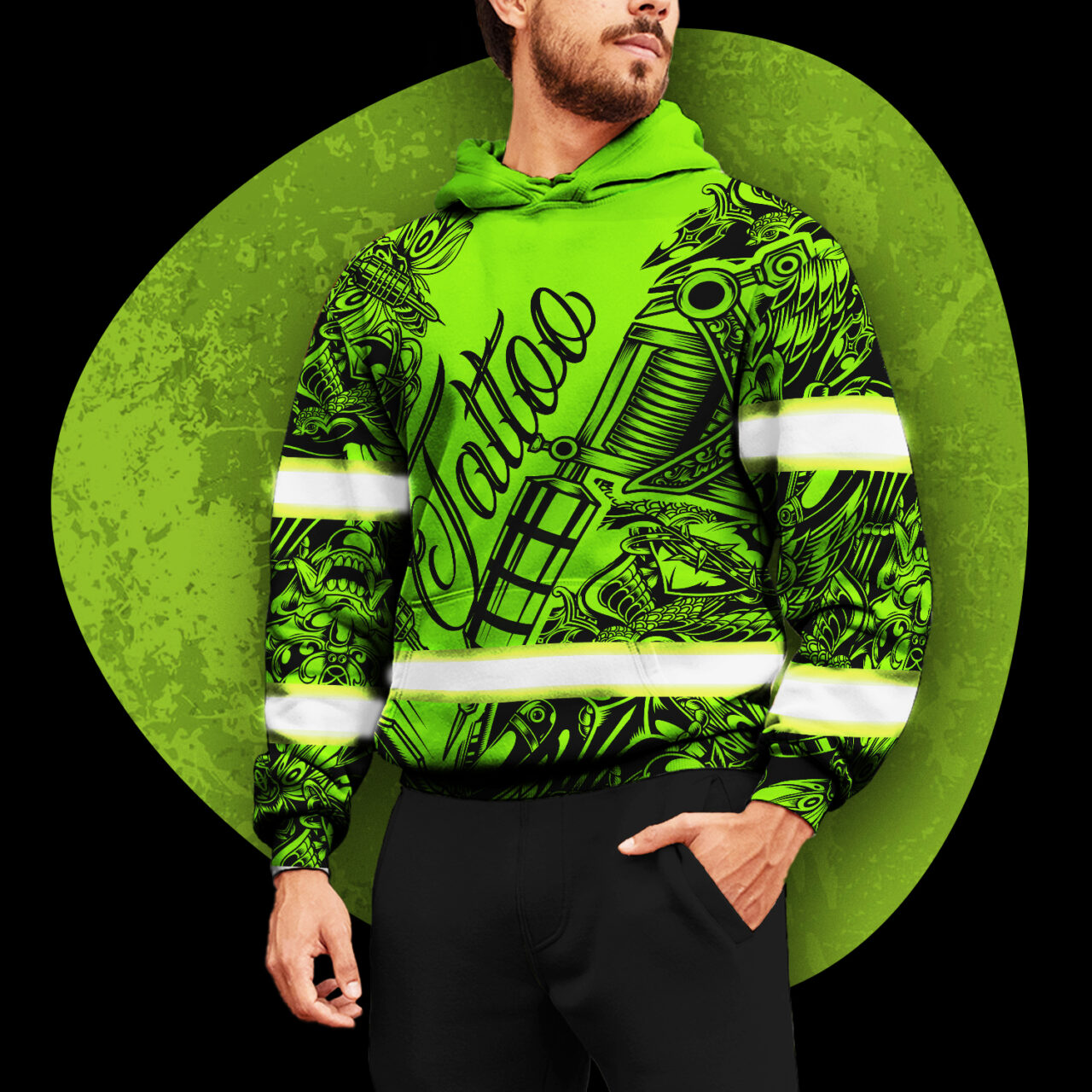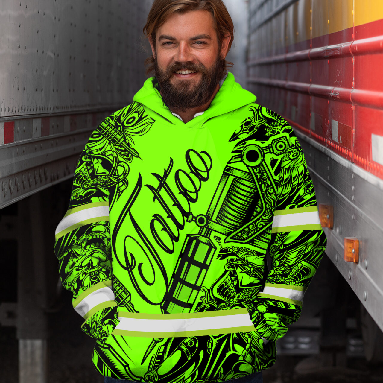 Hi Vis Hoodie Reflective Tapes Green Neon Tattoo Custom Name Safety