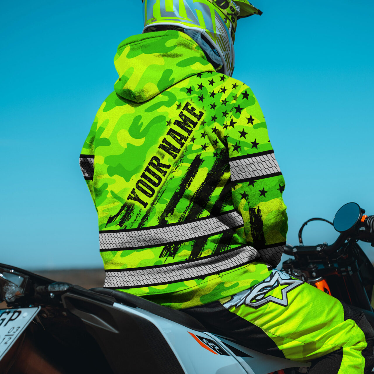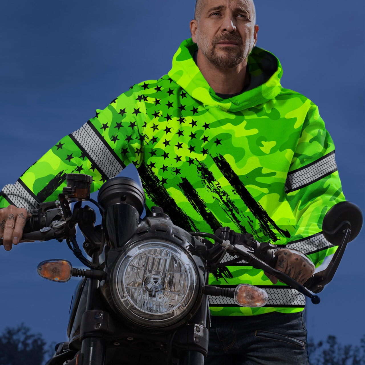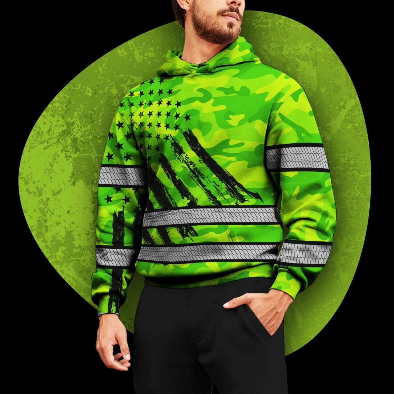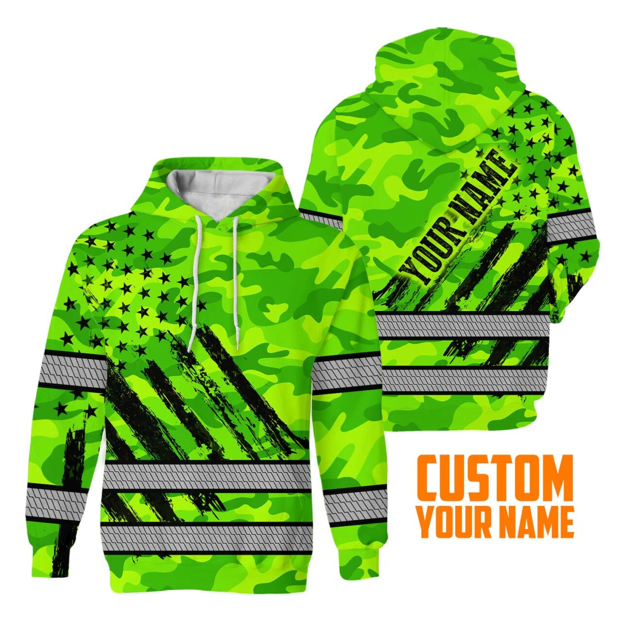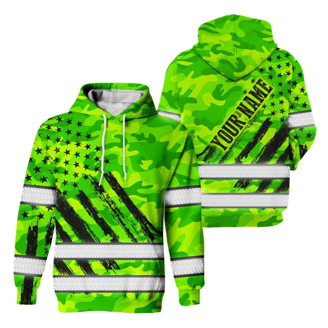 Hi Vis Hoodie Reflective Tapes Green Neon US Flag
