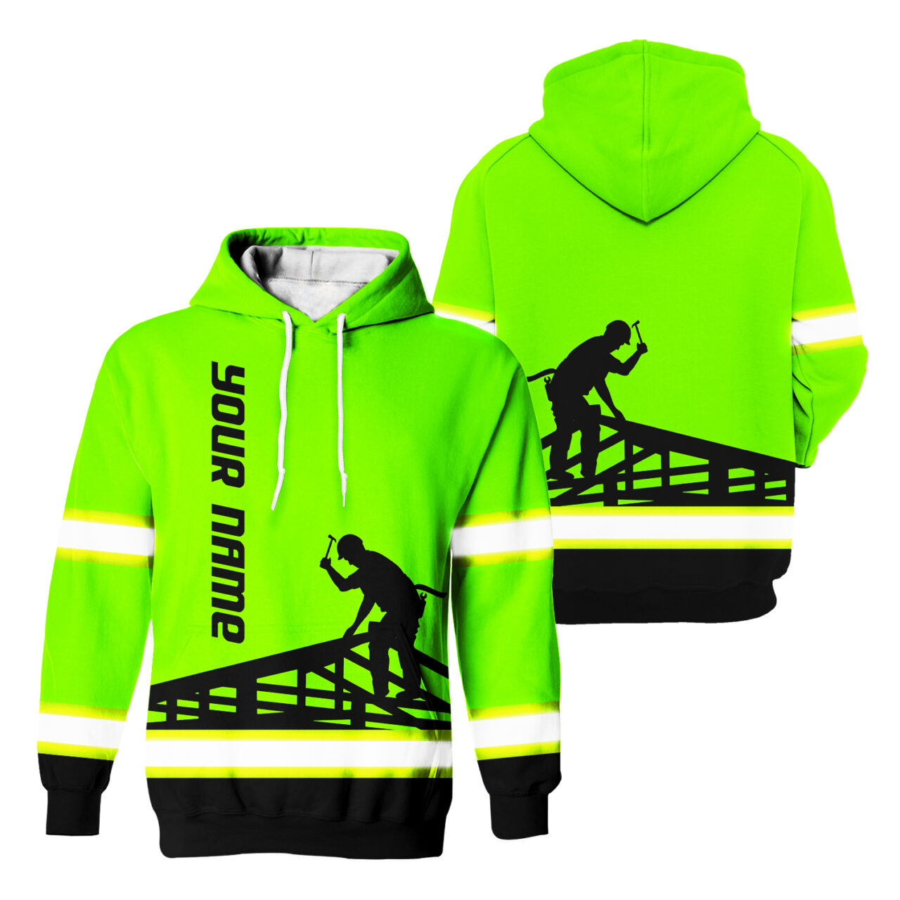 Hi Vis Hoodie Reflective Tapes Green Roofer Custom Name Safety Workwear