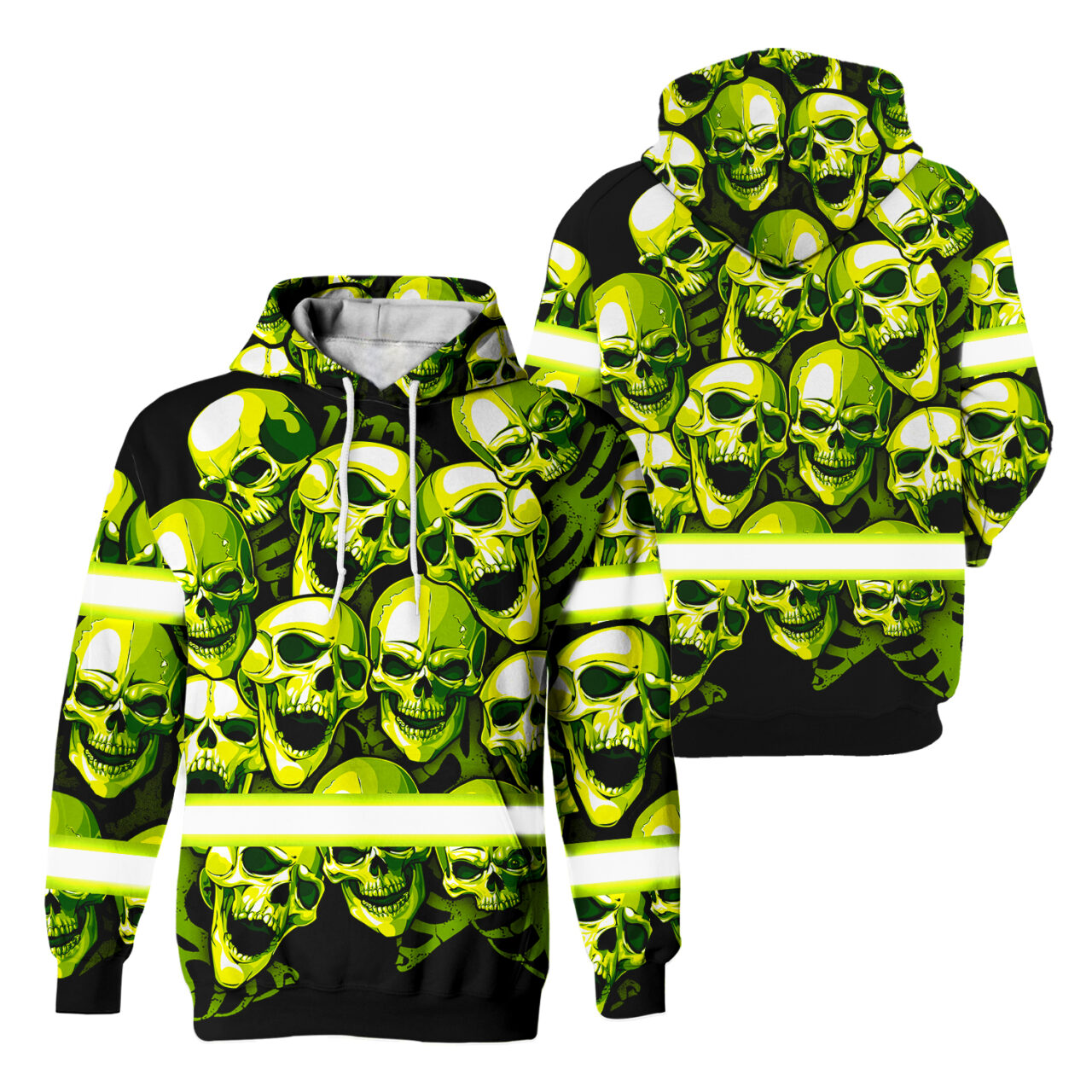 Hi Vis Hoodie Reflective Tapes Green Skull Safety Workwear For Workers, Runners, Cyclists Description