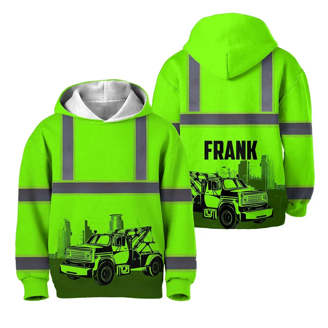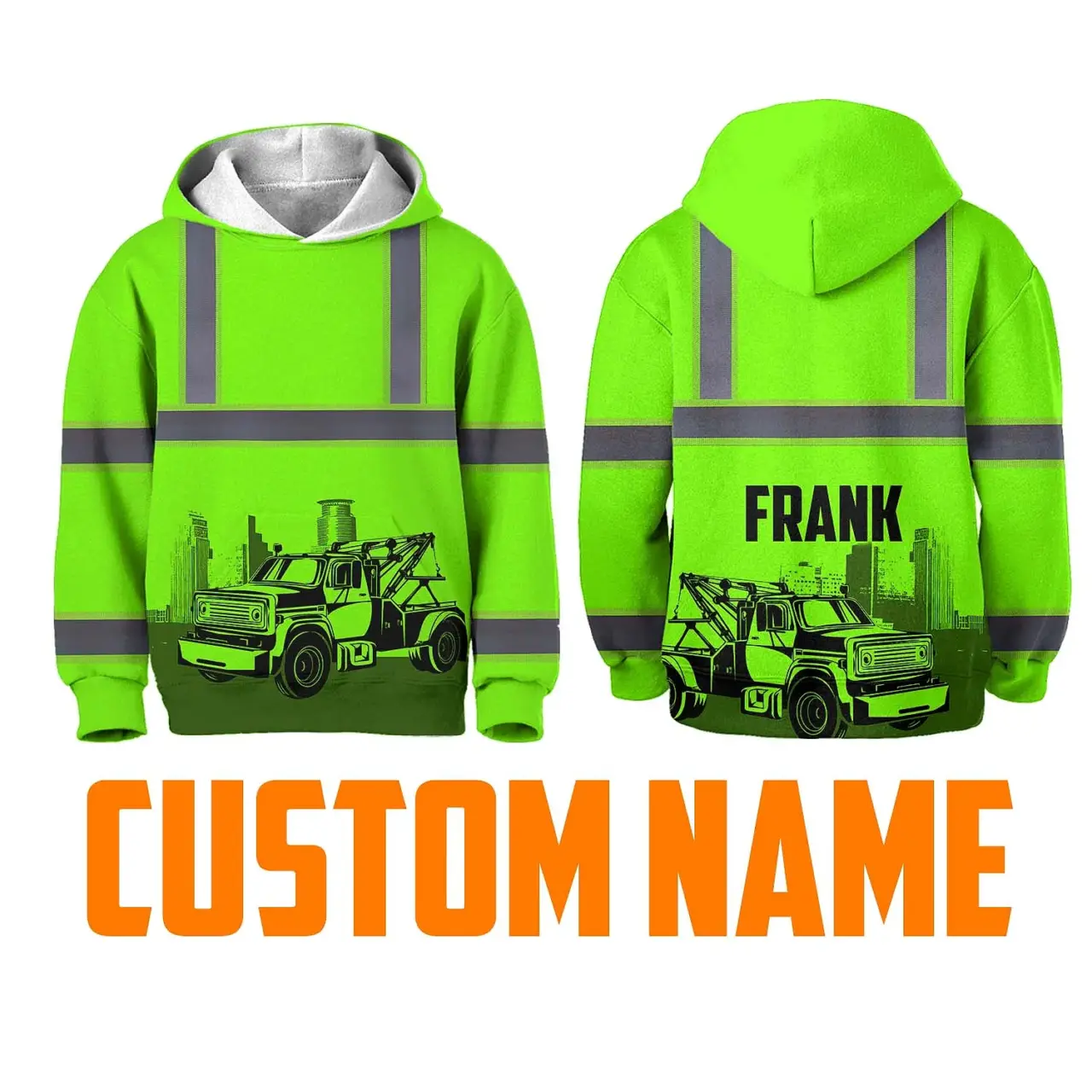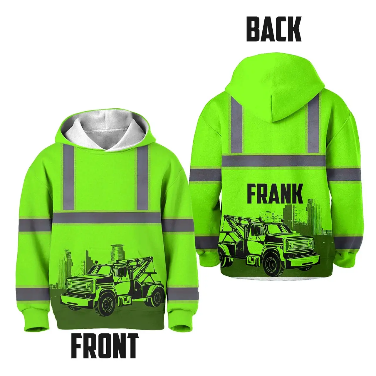 Hi Vis Hoodie Reflective Tapes Green Tow Truck Driver Custom Name For Kids