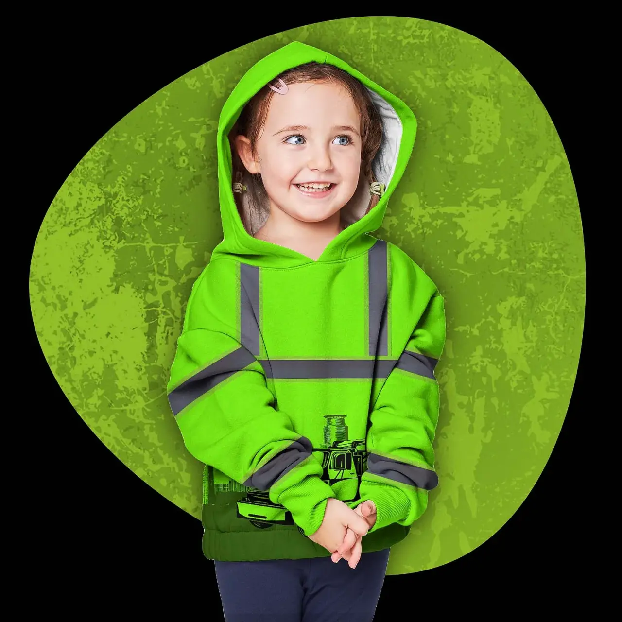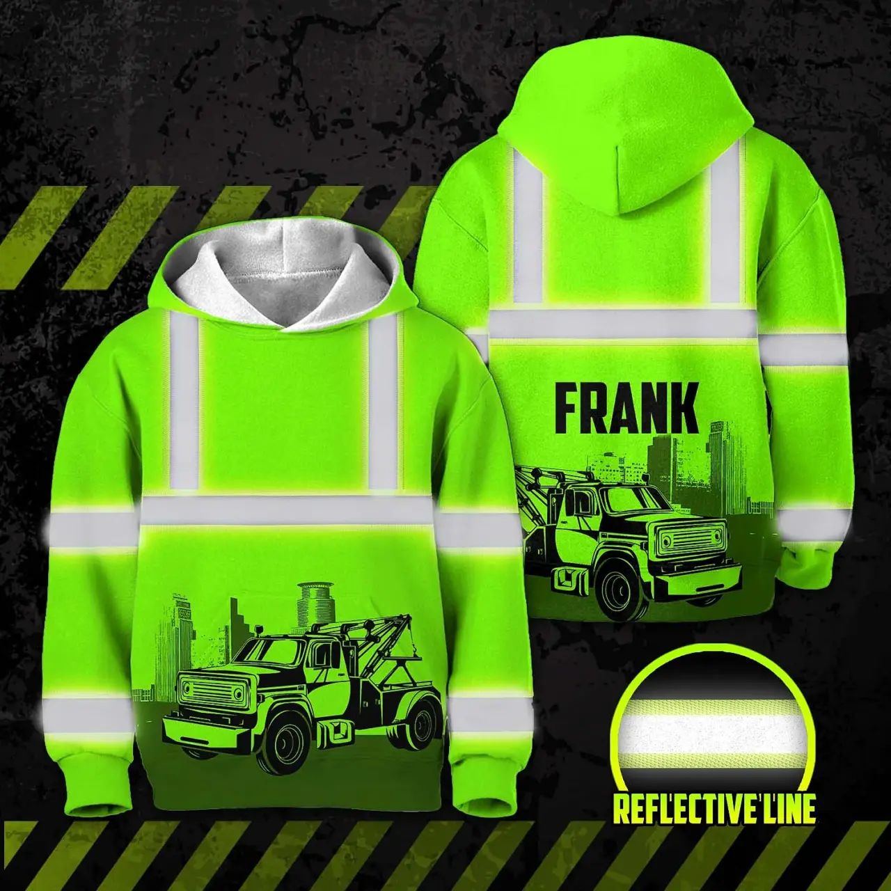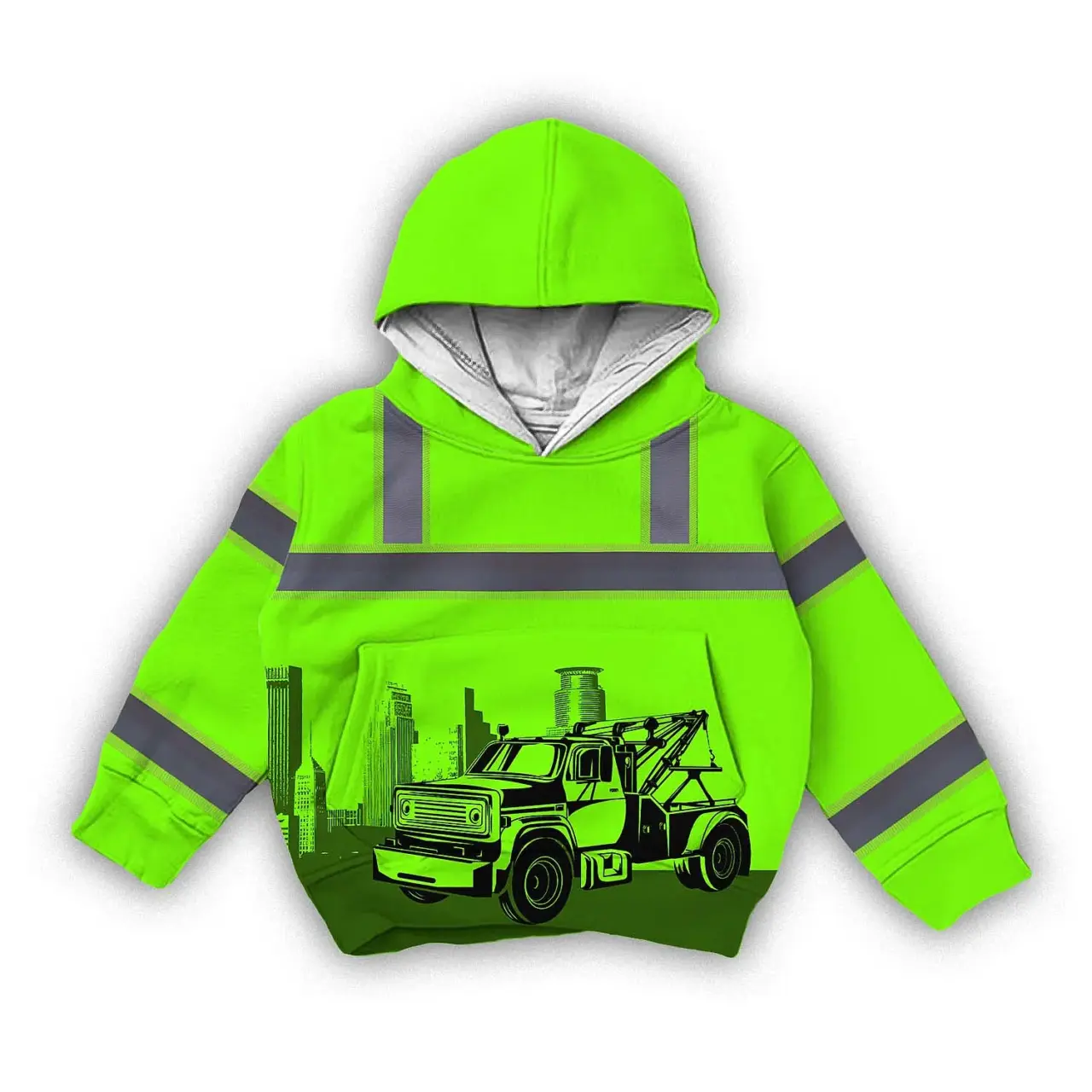 Hi Vis Hoodie Reflective Tapes Green Tow Truck Driver Custom Name For Kids