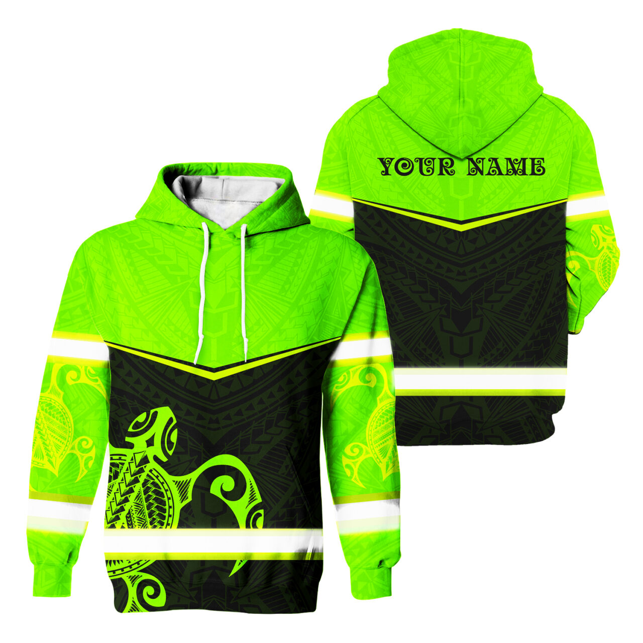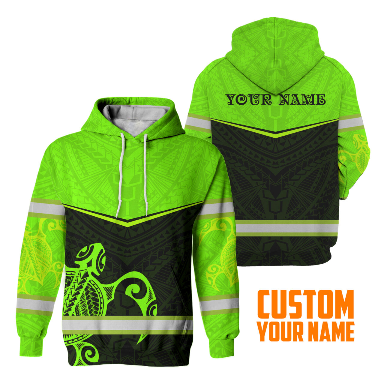 Hi Vis Hoodie Reflective Tapes Green Turtle Hawaiian Custom Name Safety Workwear