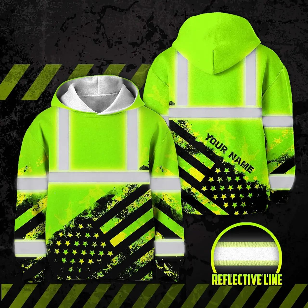 Select options This product has multiple variants. The options may be chosen on the product pageHi Vis Hoodie Reflective USA Flag Green Neon Safety Workwear