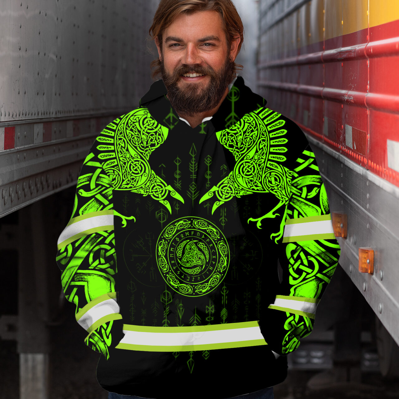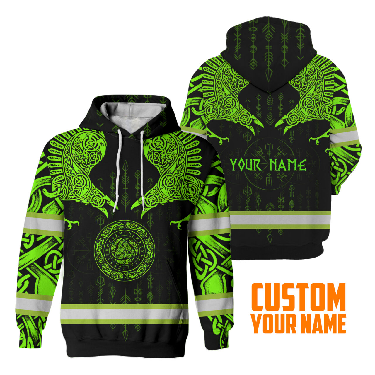 Hi Vis Hoodie Reflective Tapes Green Viking Custom Name Safety Workwear