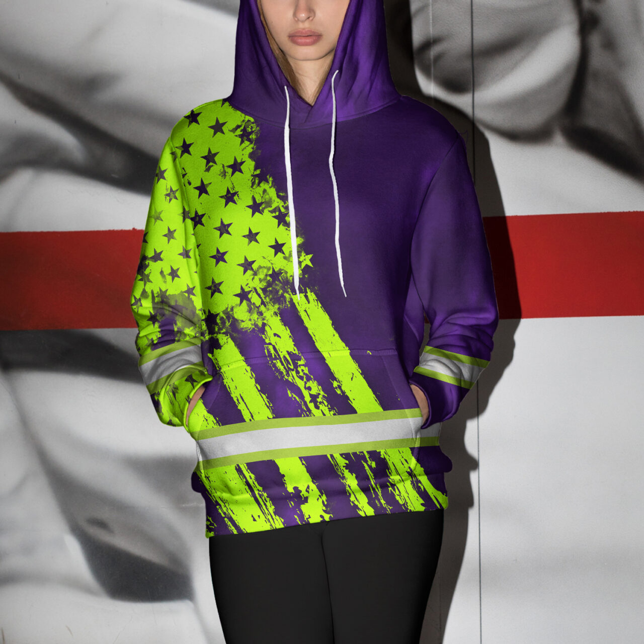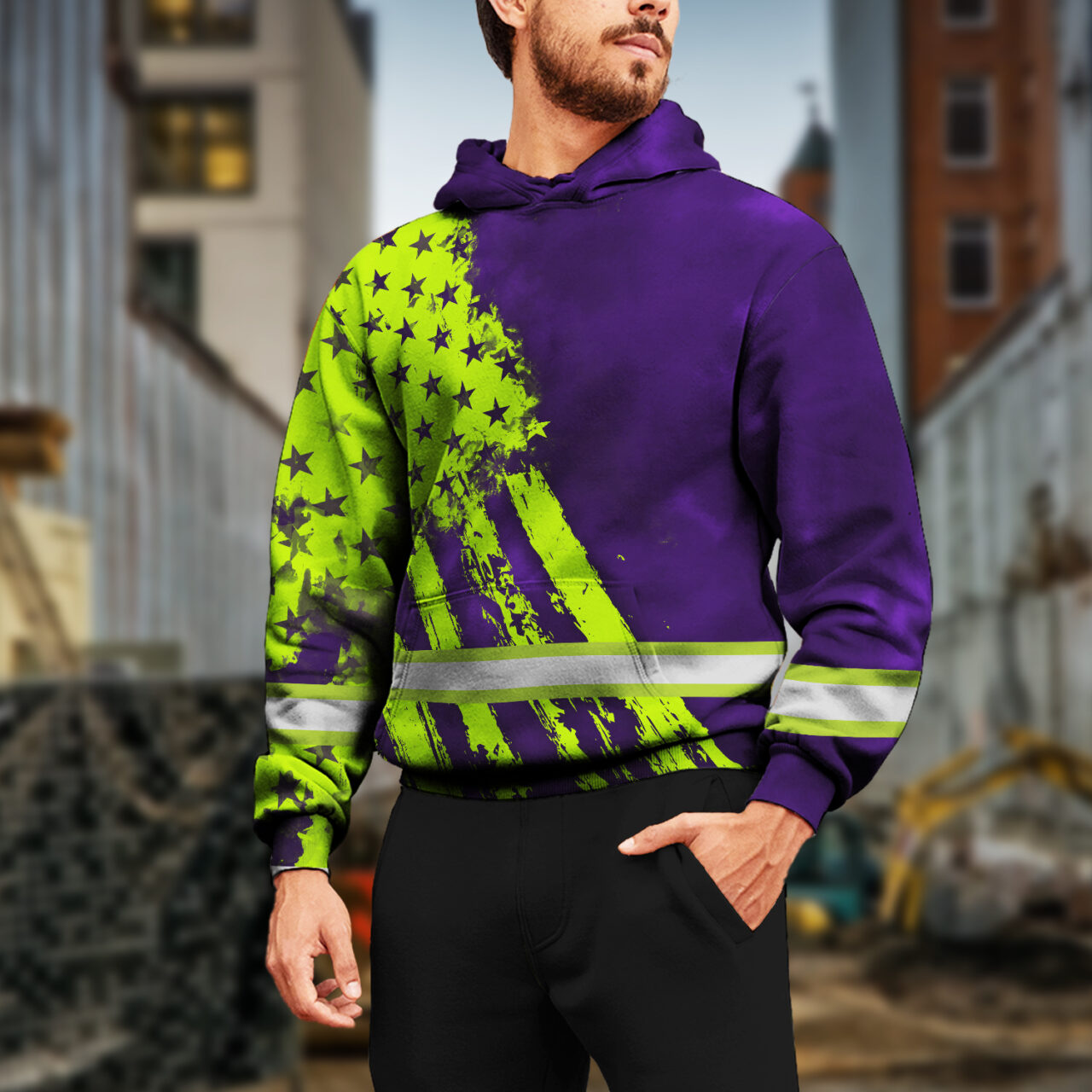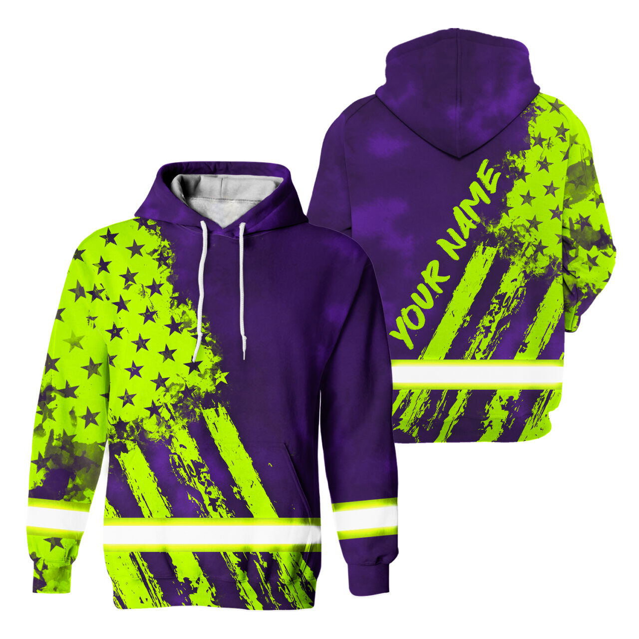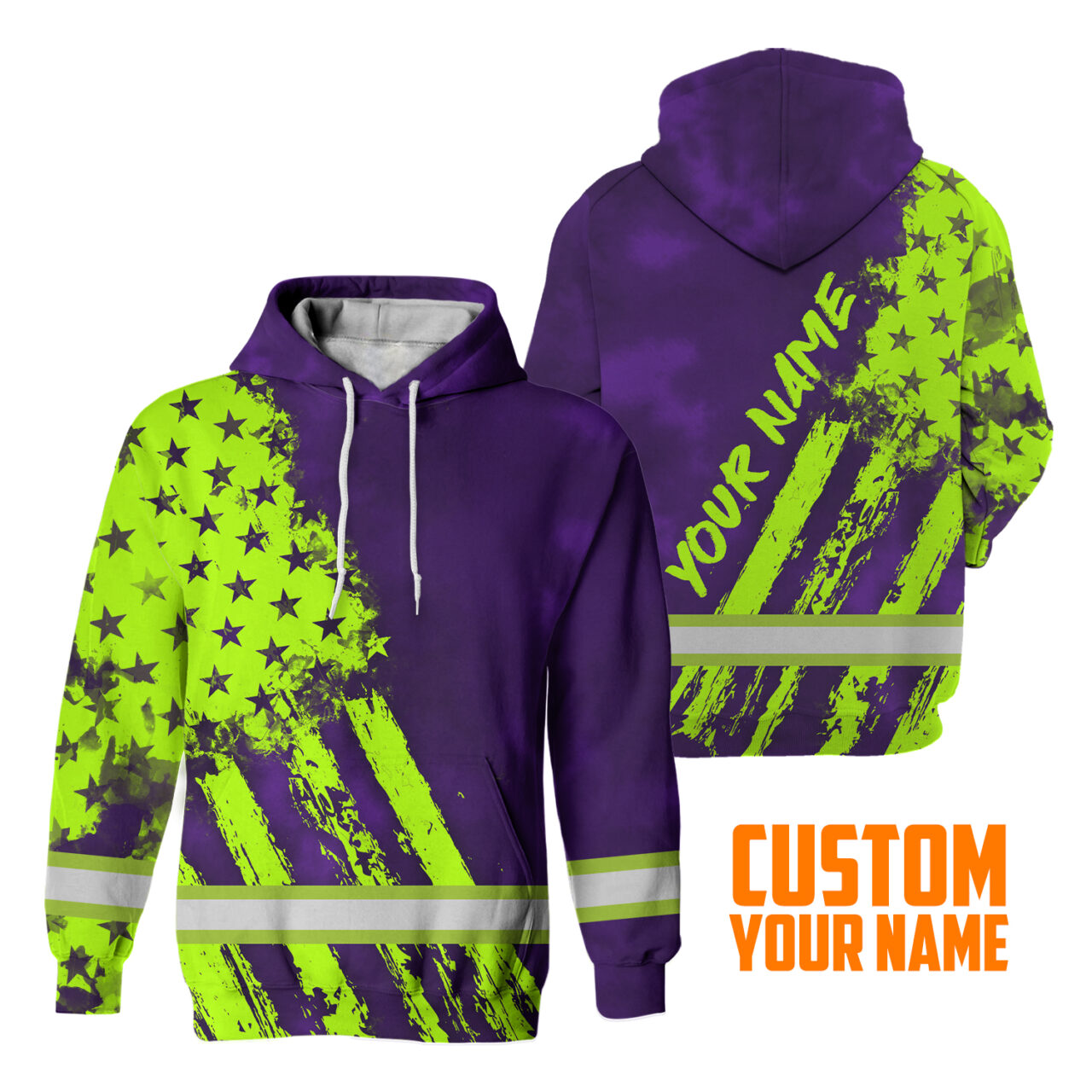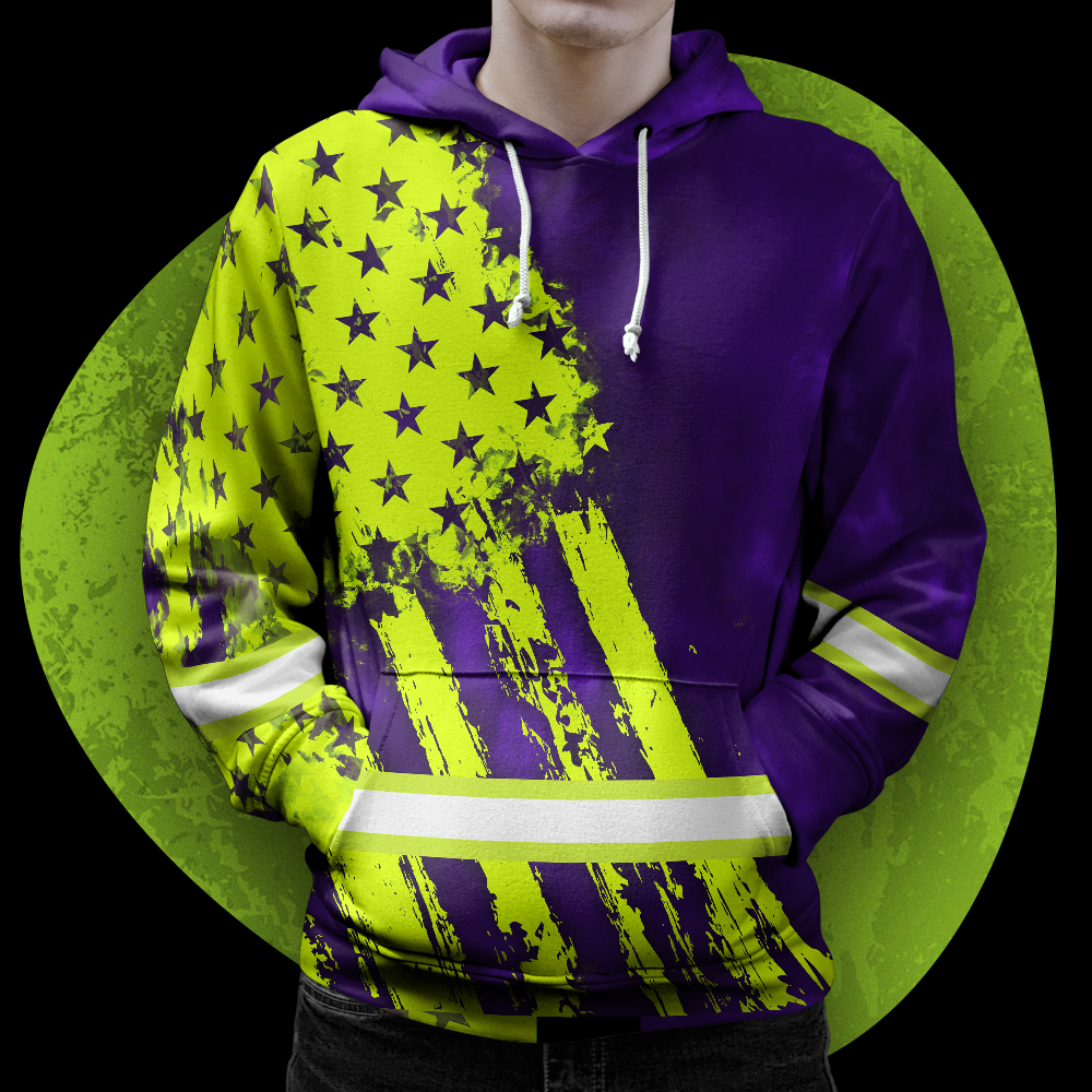 Hi Vis Hoodie Reflective Tapes Green Violet Flag Custom Name Safety