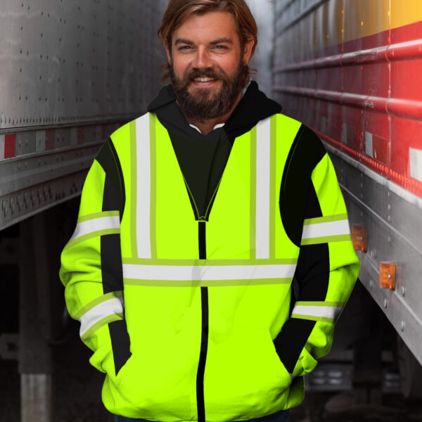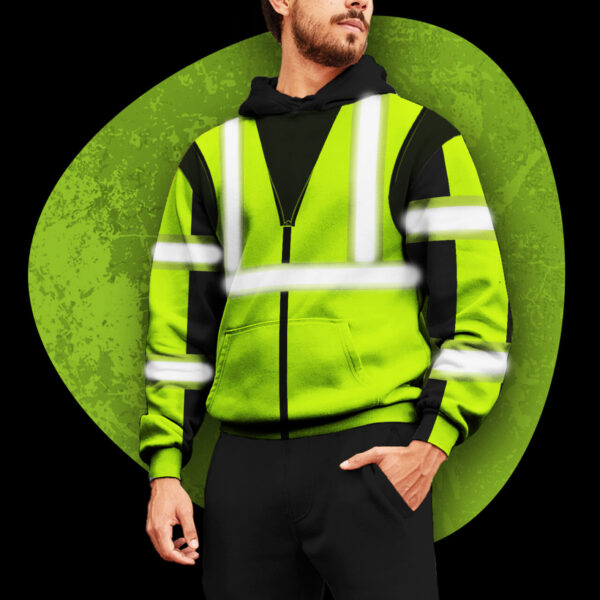 Hi Vis Reflective Green Custom Name And Logo Hoodie Safety Workwear