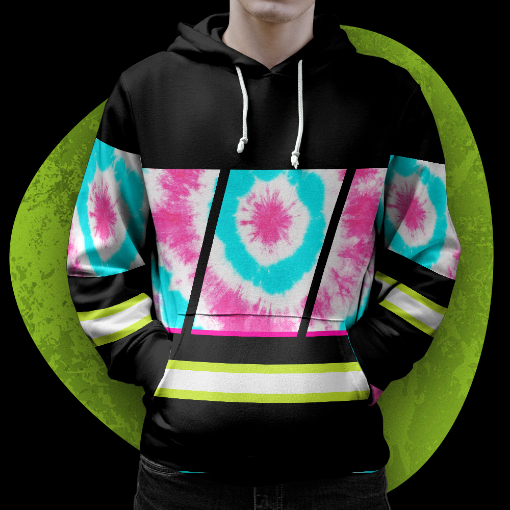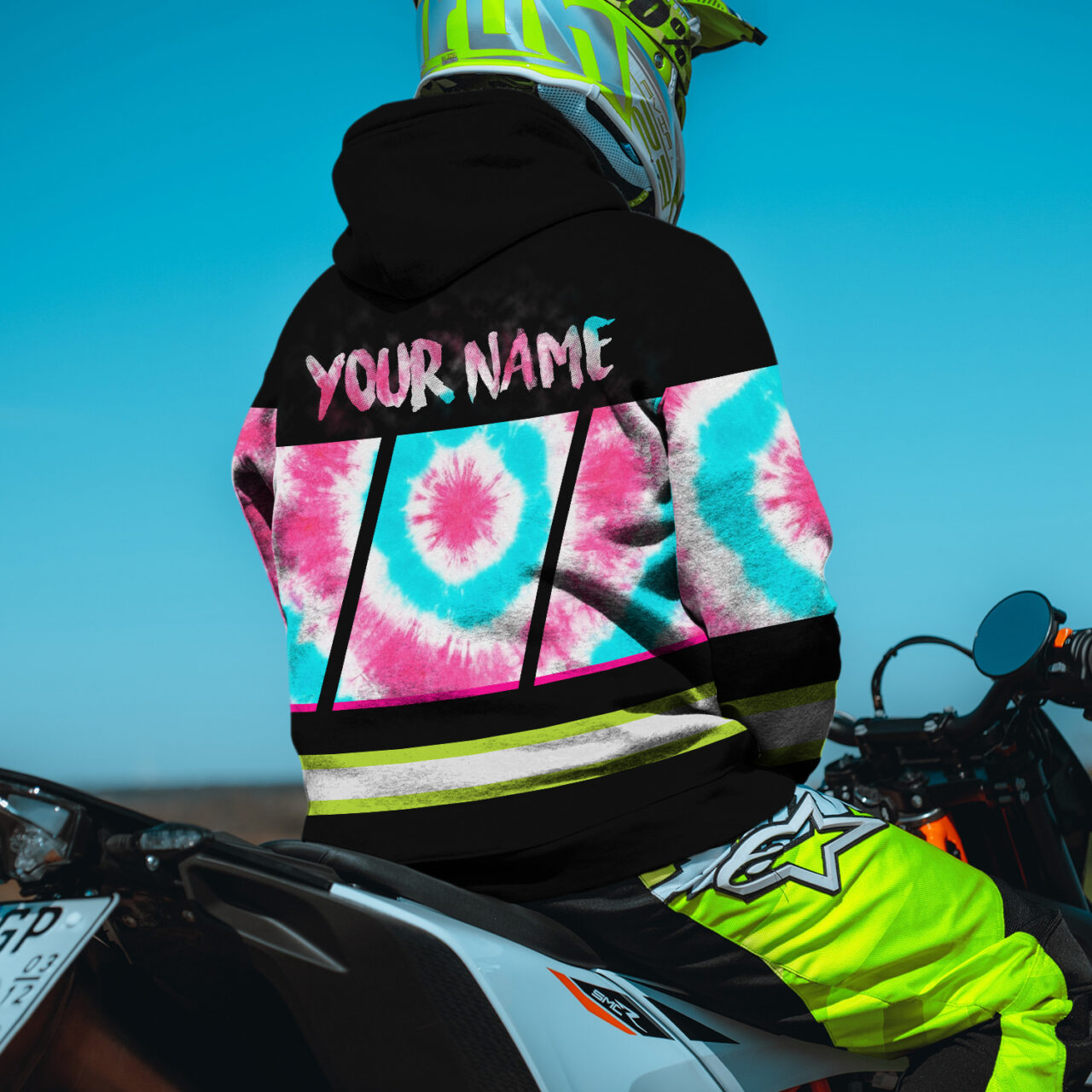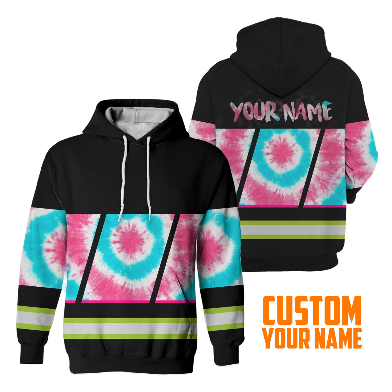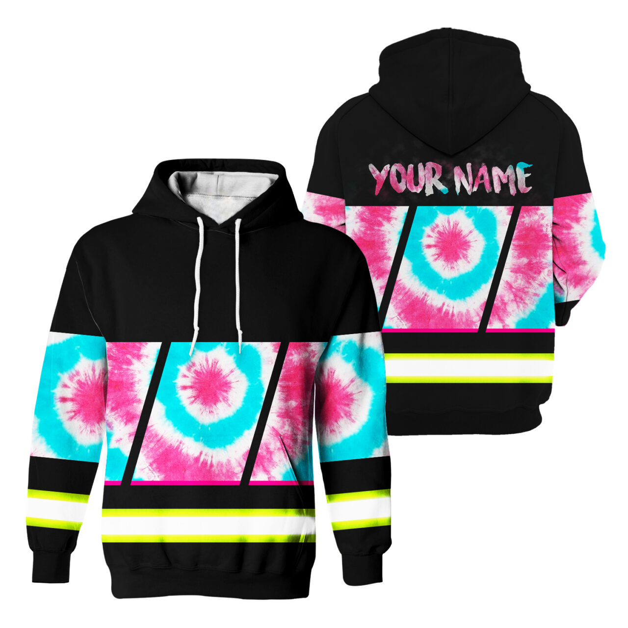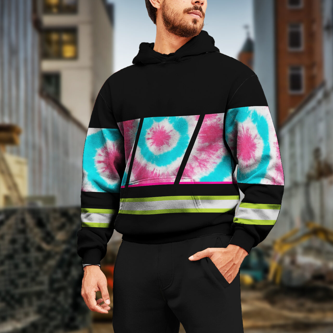 Hi Vis Hoodie Reflective Tapes Light Blue Pink Tie Dye Custom Name Safety Workwear For Workers, Runners, Cyclists