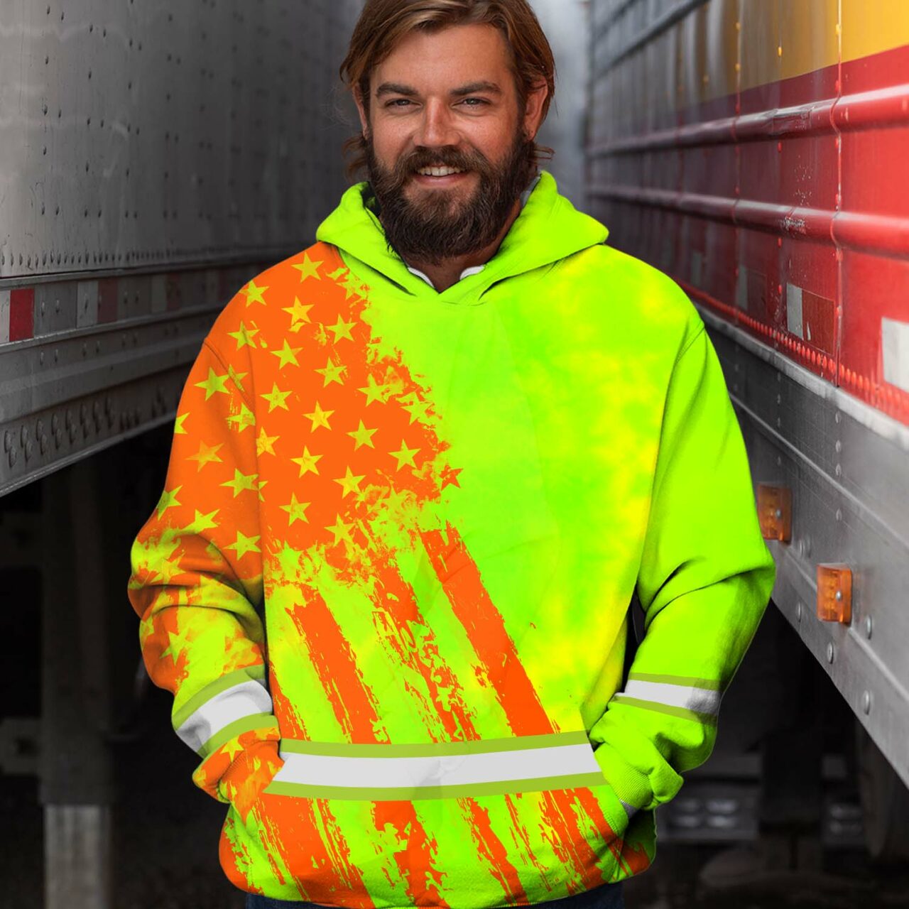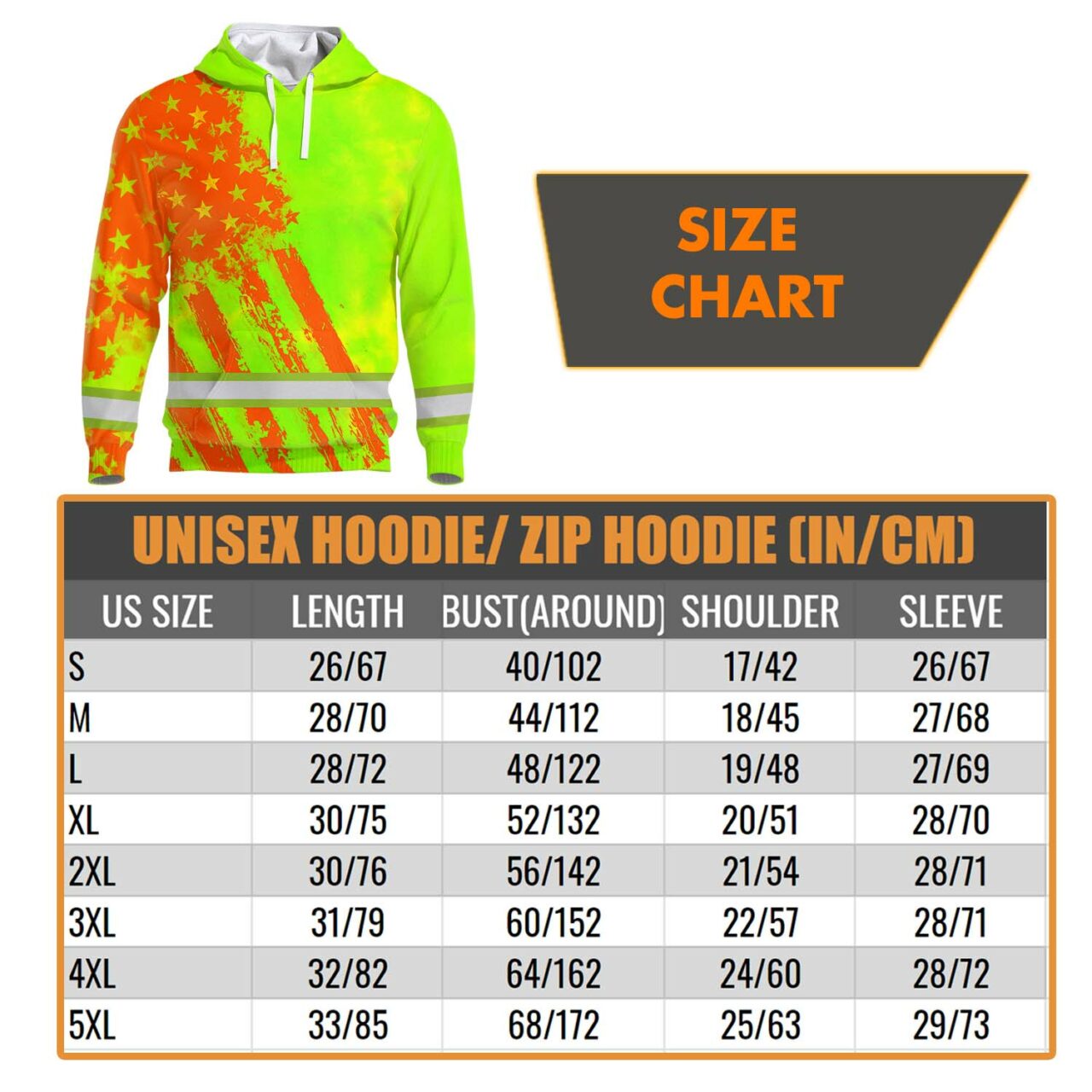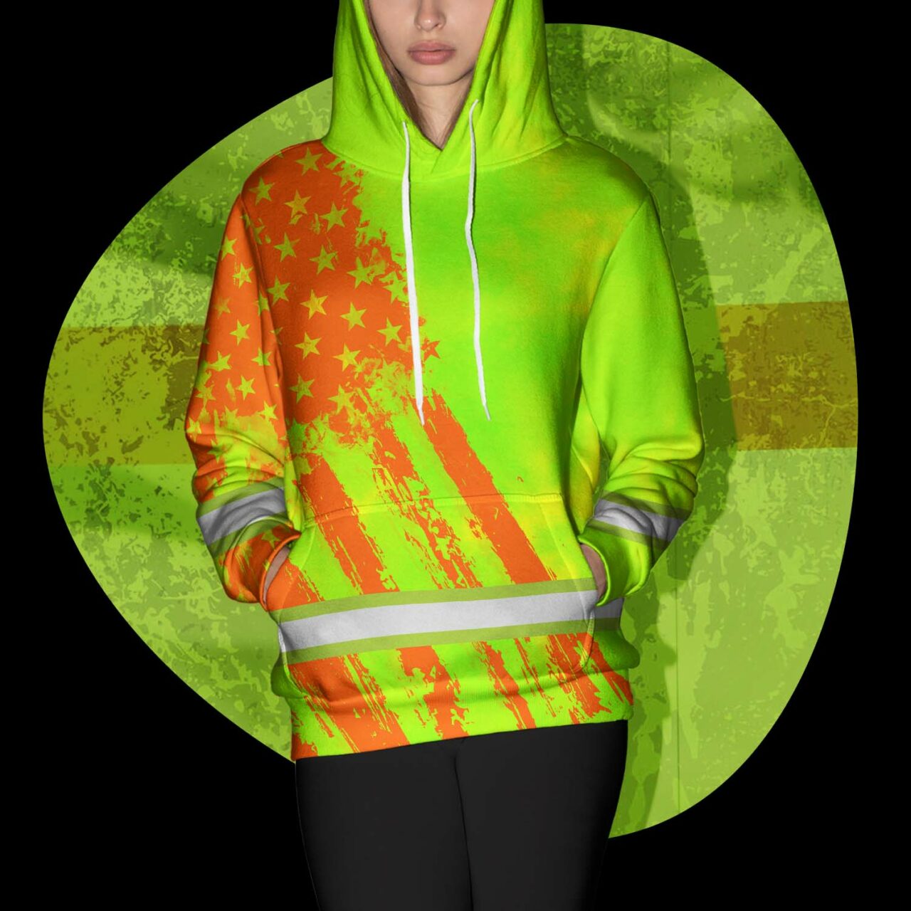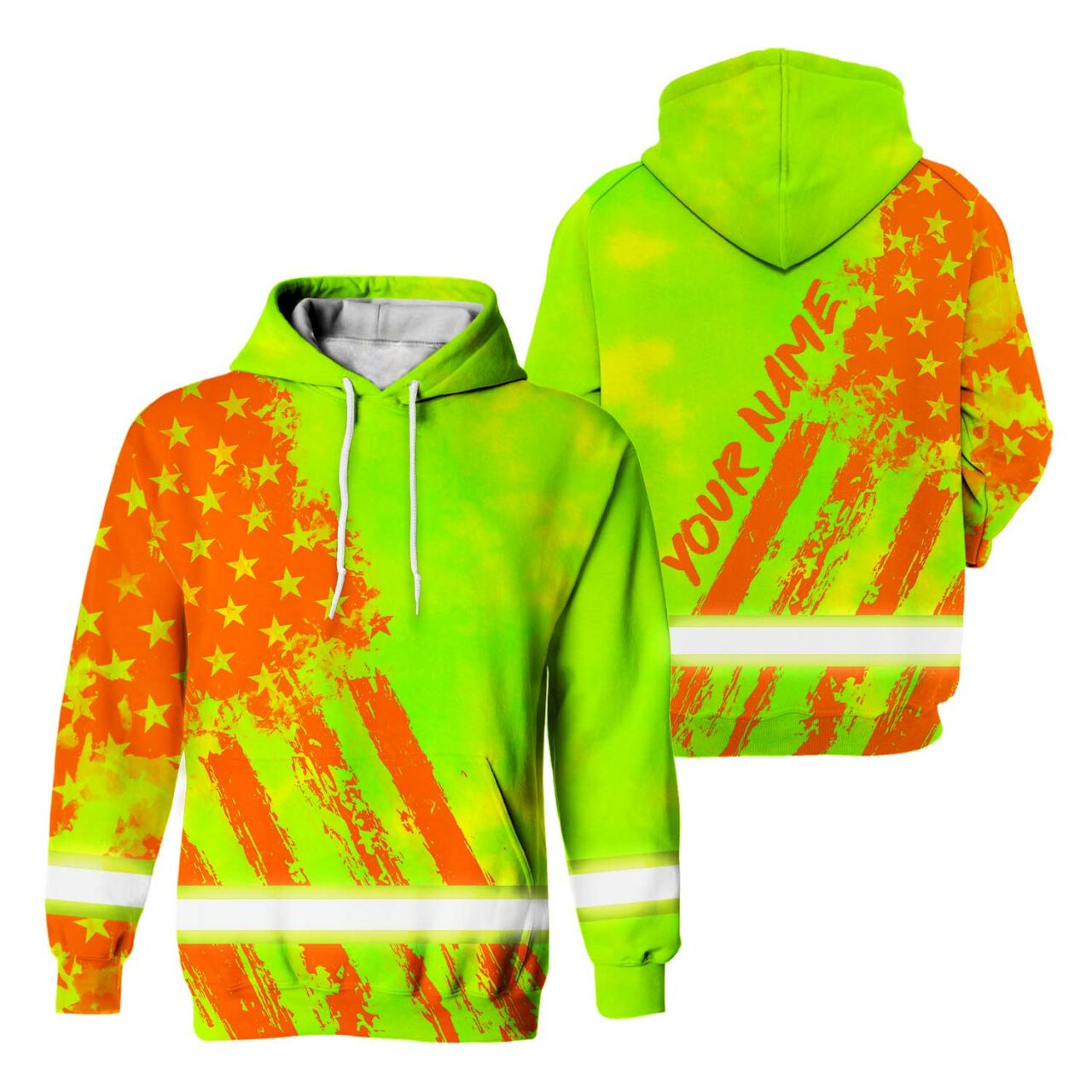 Hi Vis Hoodie Reflective Tapes Lime Neon And Orange US Flag