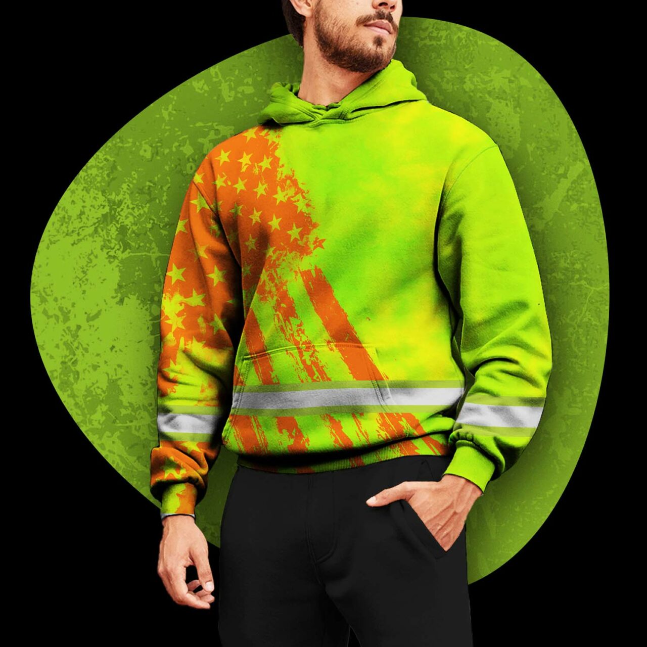 Select options This product has multiple variants. The options may be chosen on the product pageHi Vis Hoodie Reflective USA Flag Green Neon Safety Workwear