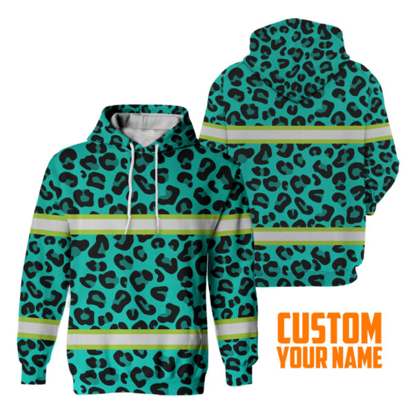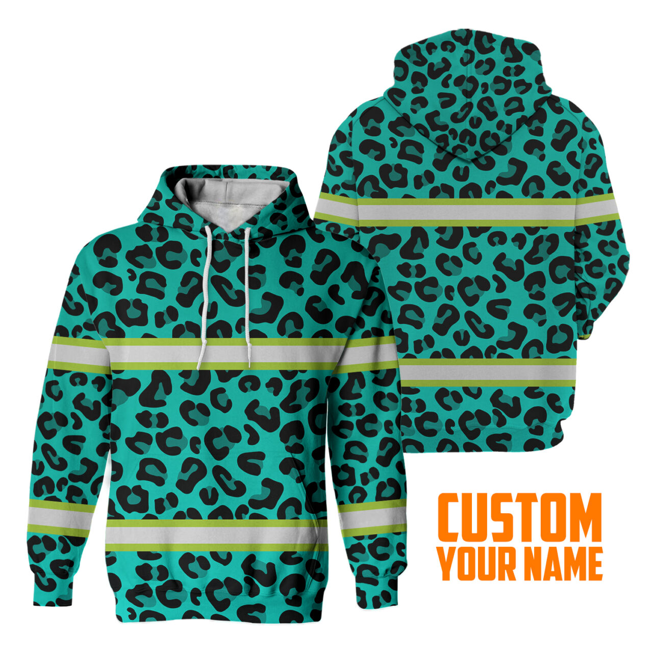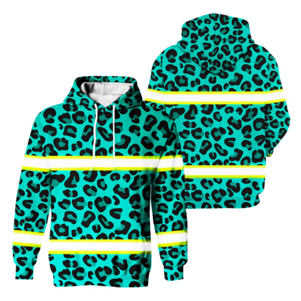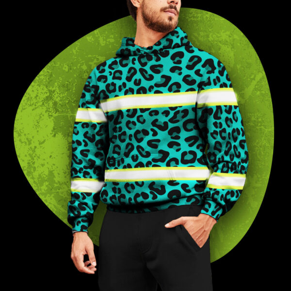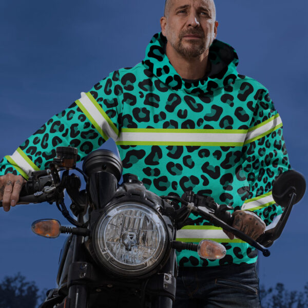 Hi Vis Hoodie Reflective Tapes Mint Leopard Safety Workwear For Workers, Runners, Cyclists