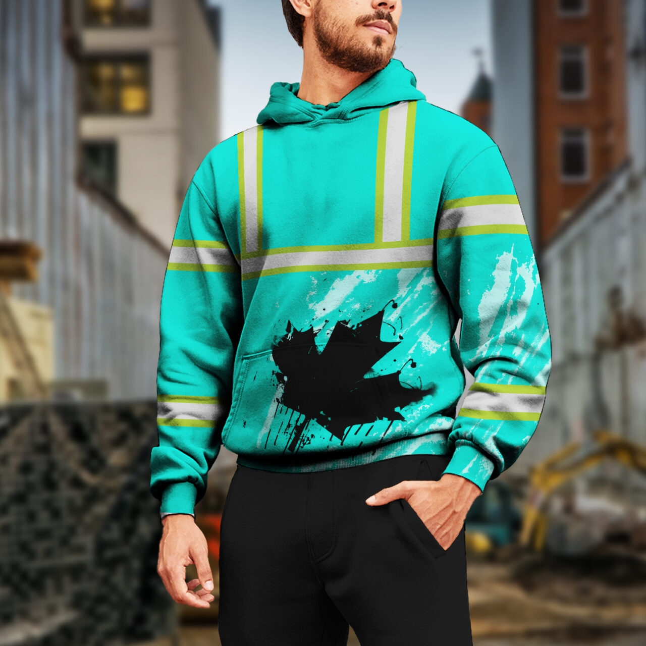 Be the first to review “Hi Vis Hoodie Reflective Tapes Mint Neon Canada Flag Custom Name”