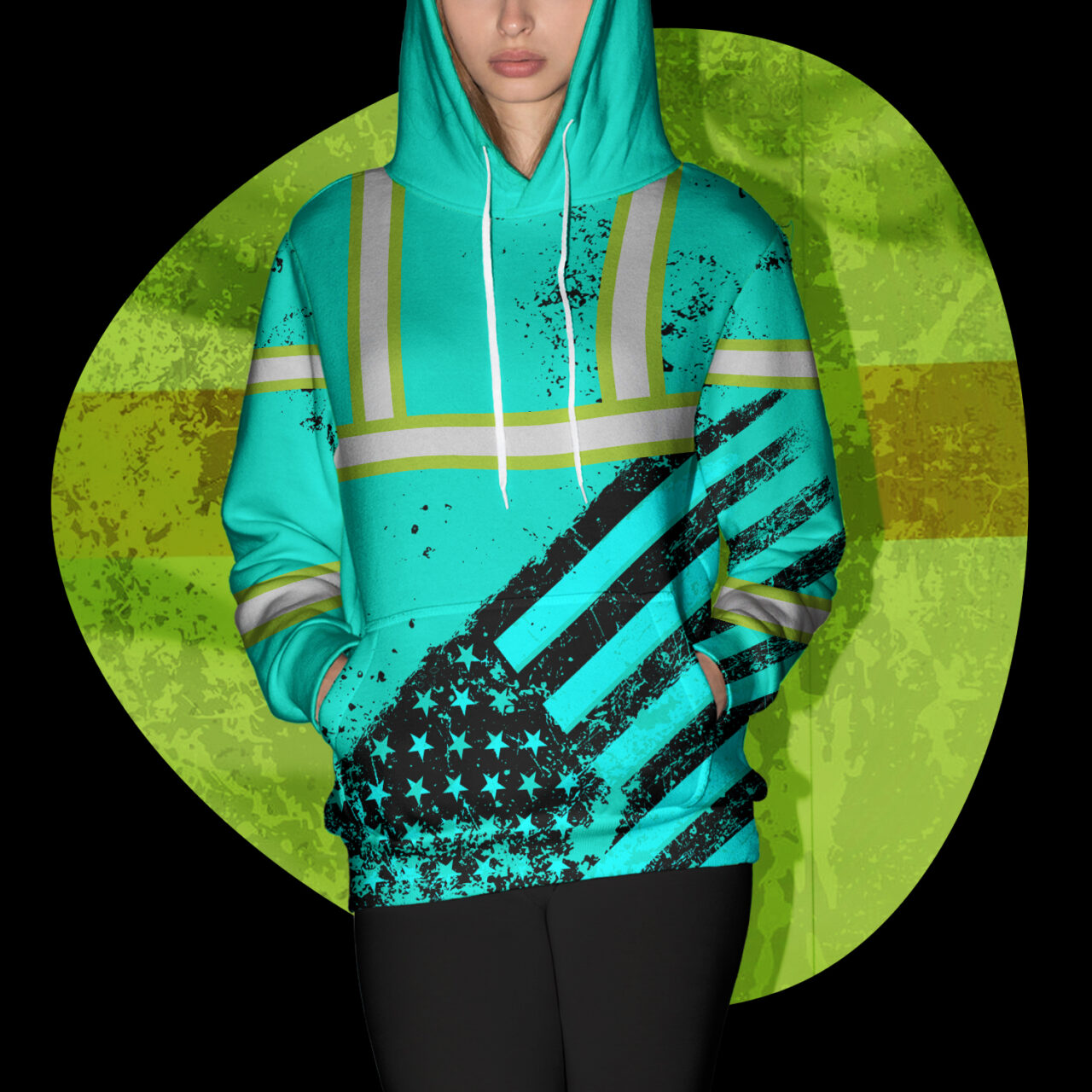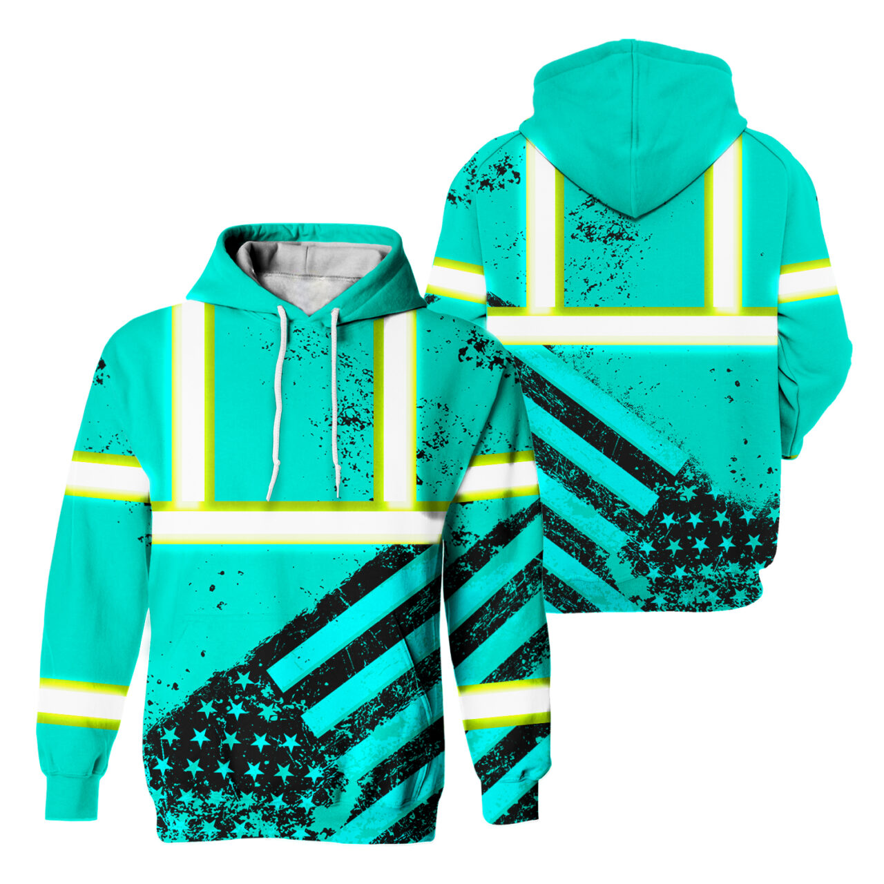 Hi Vis Hoodie Reflective Tapes Mint Neon USA Flag Safety Workwear