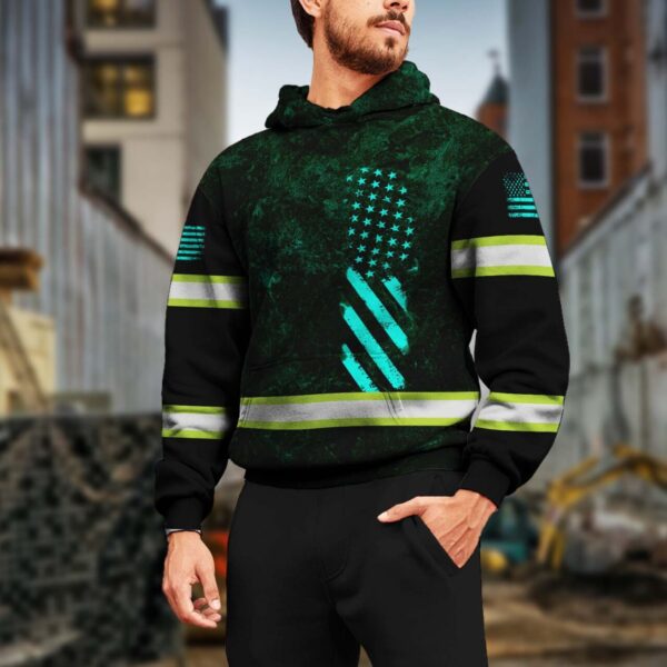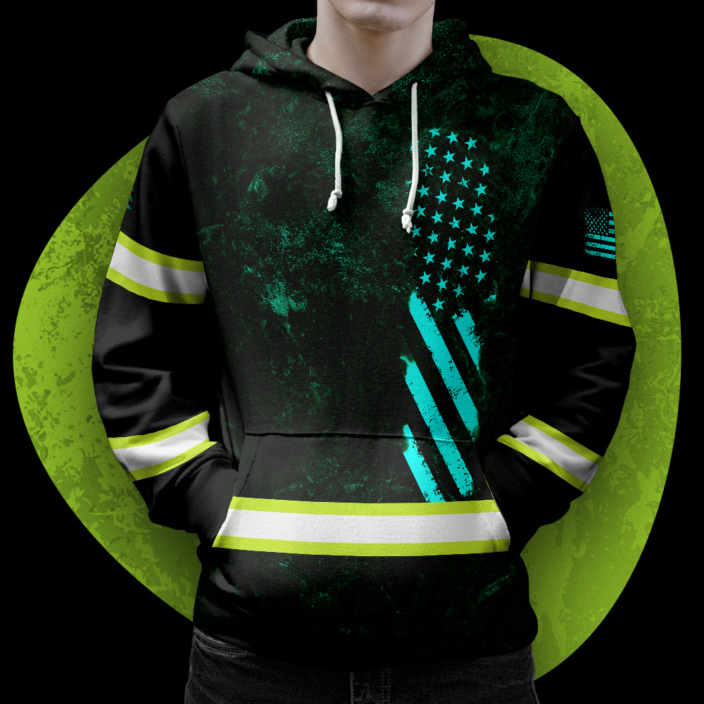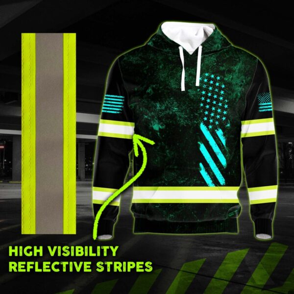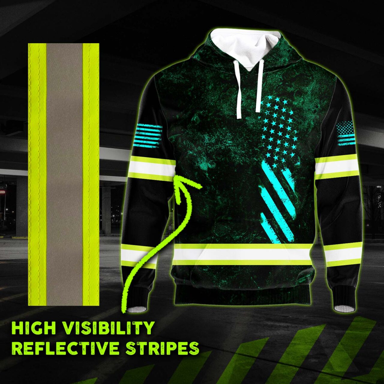 Hi Vis Hoodie Reflective Tapes Mint US Flag Custom Name Safety Workwear For Workers, Runners, Cyclists, Patriotic, Truckers quantity