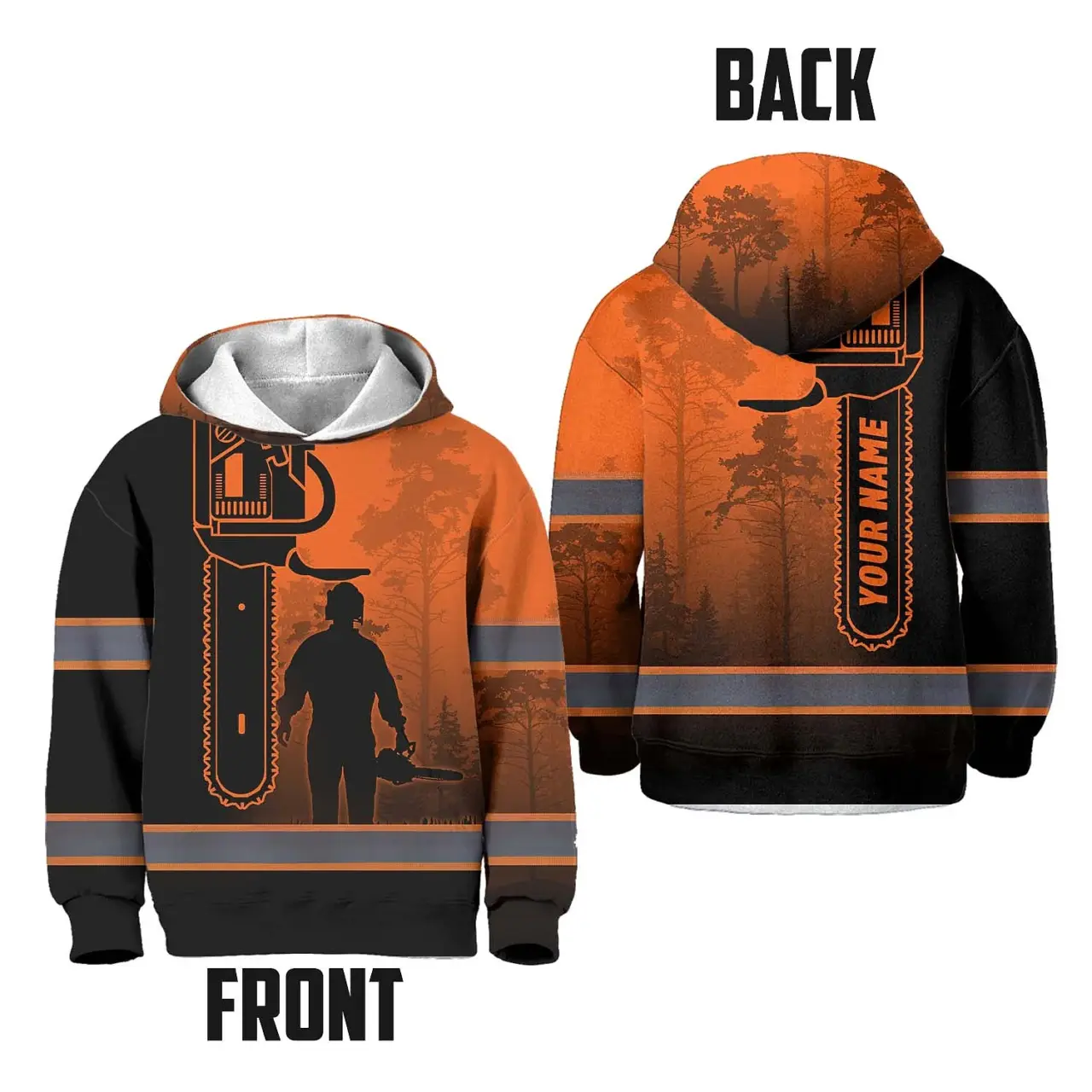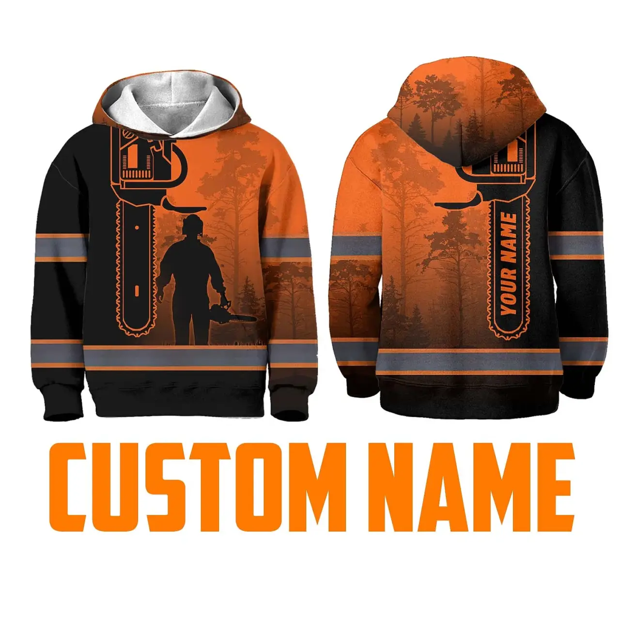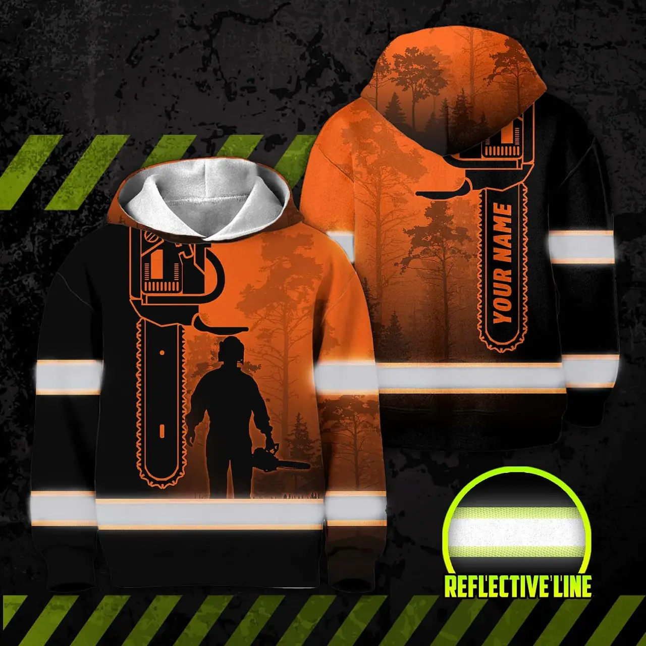 Hi Vis Hoodie Reflective Tapes Orange Chainsaw Logger Custom Name For Kids