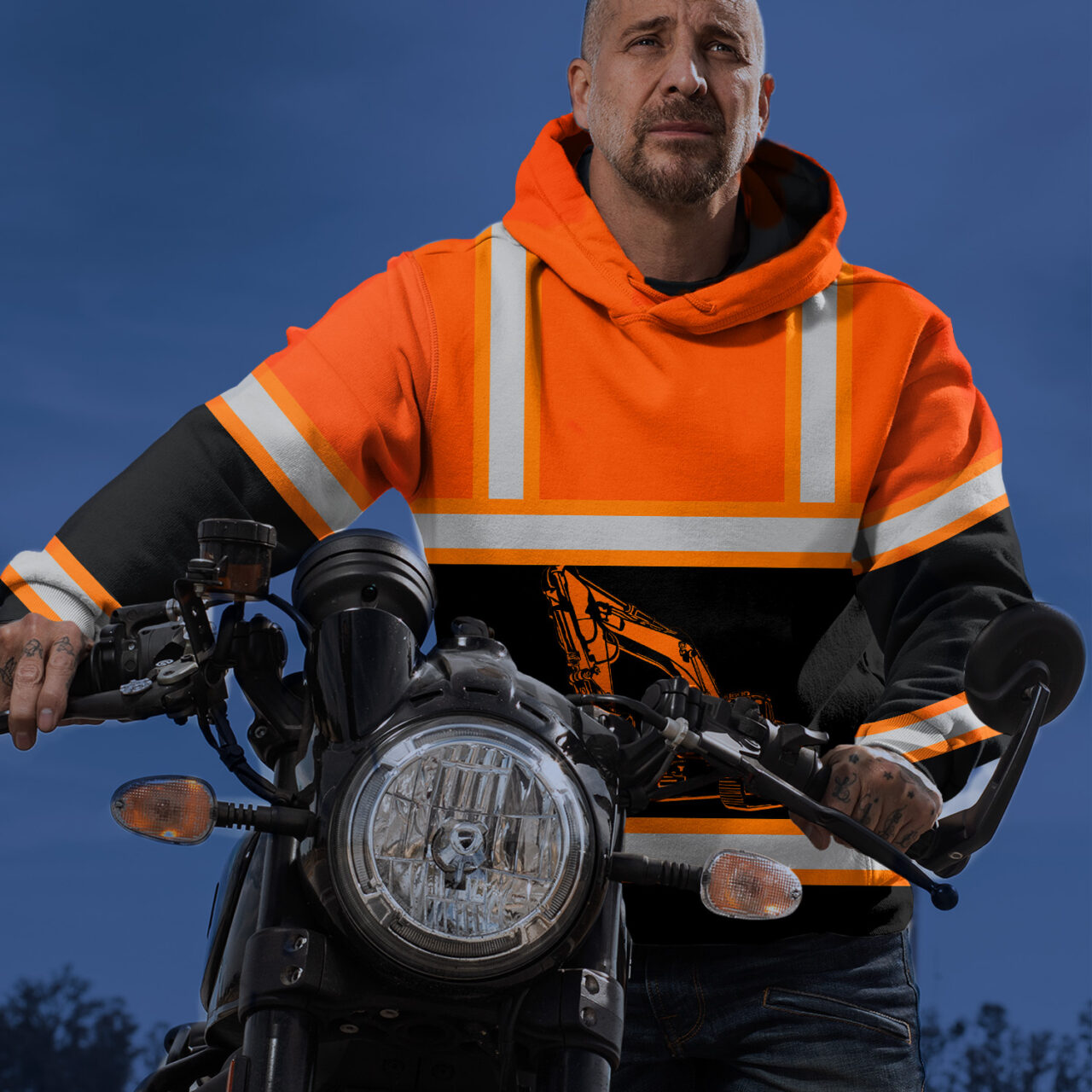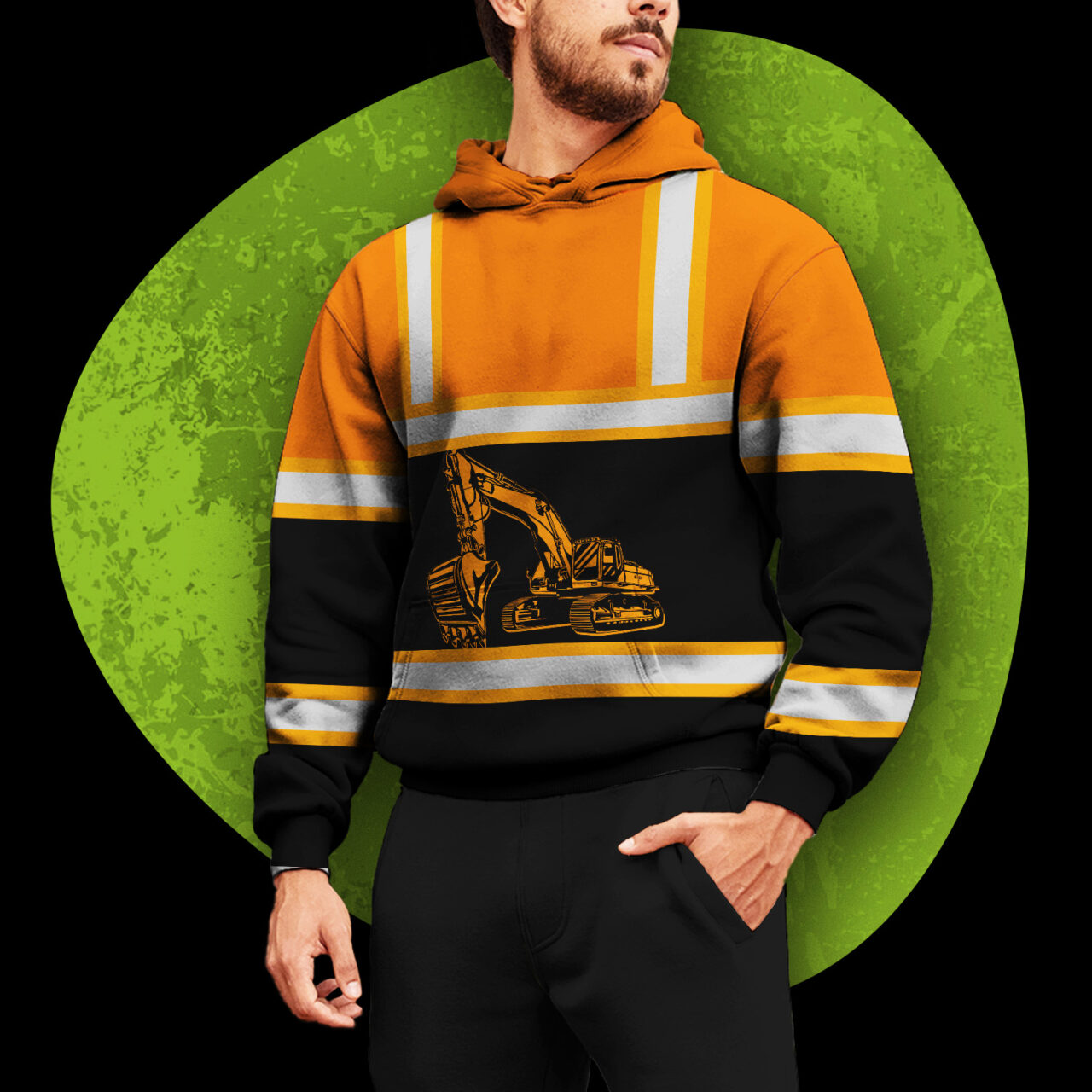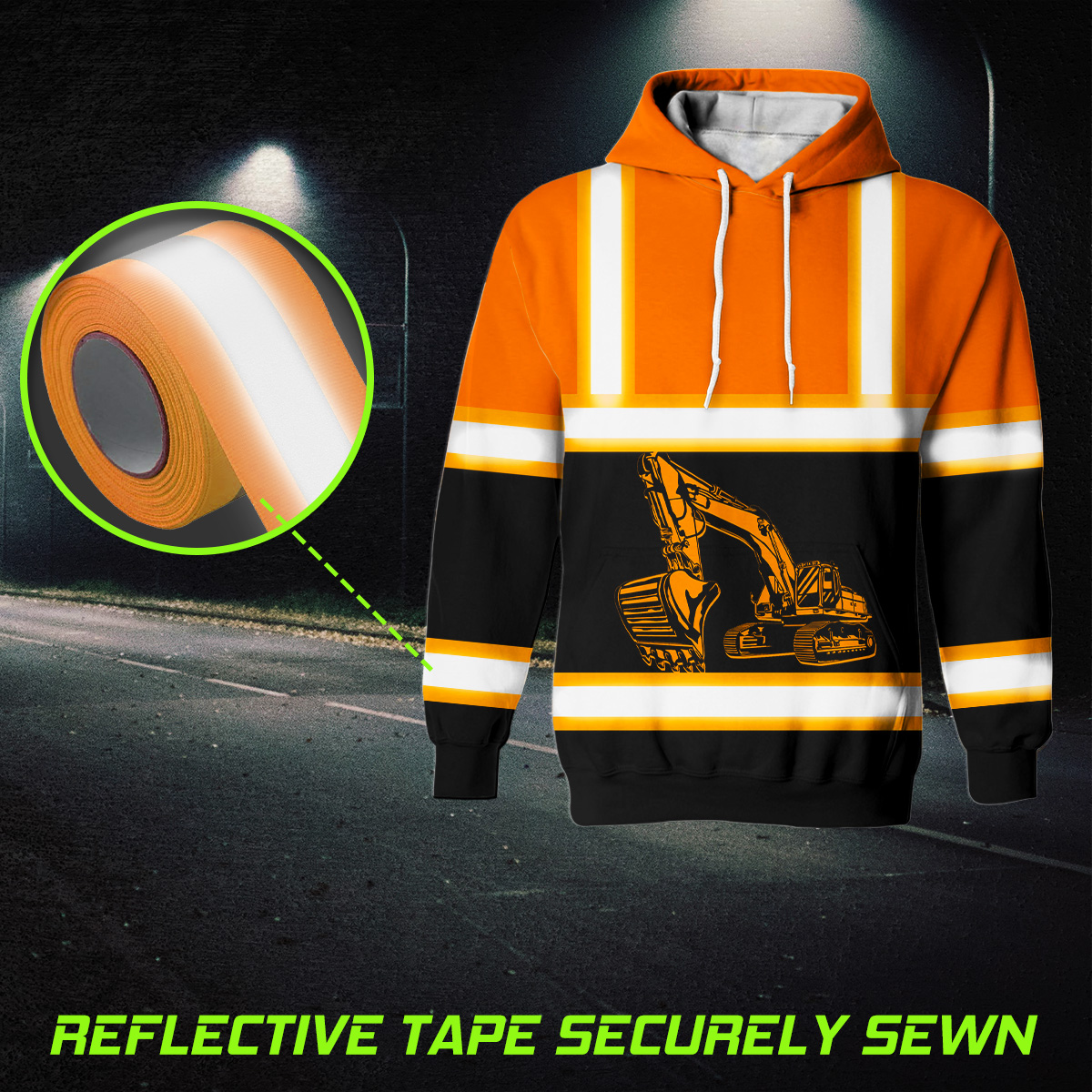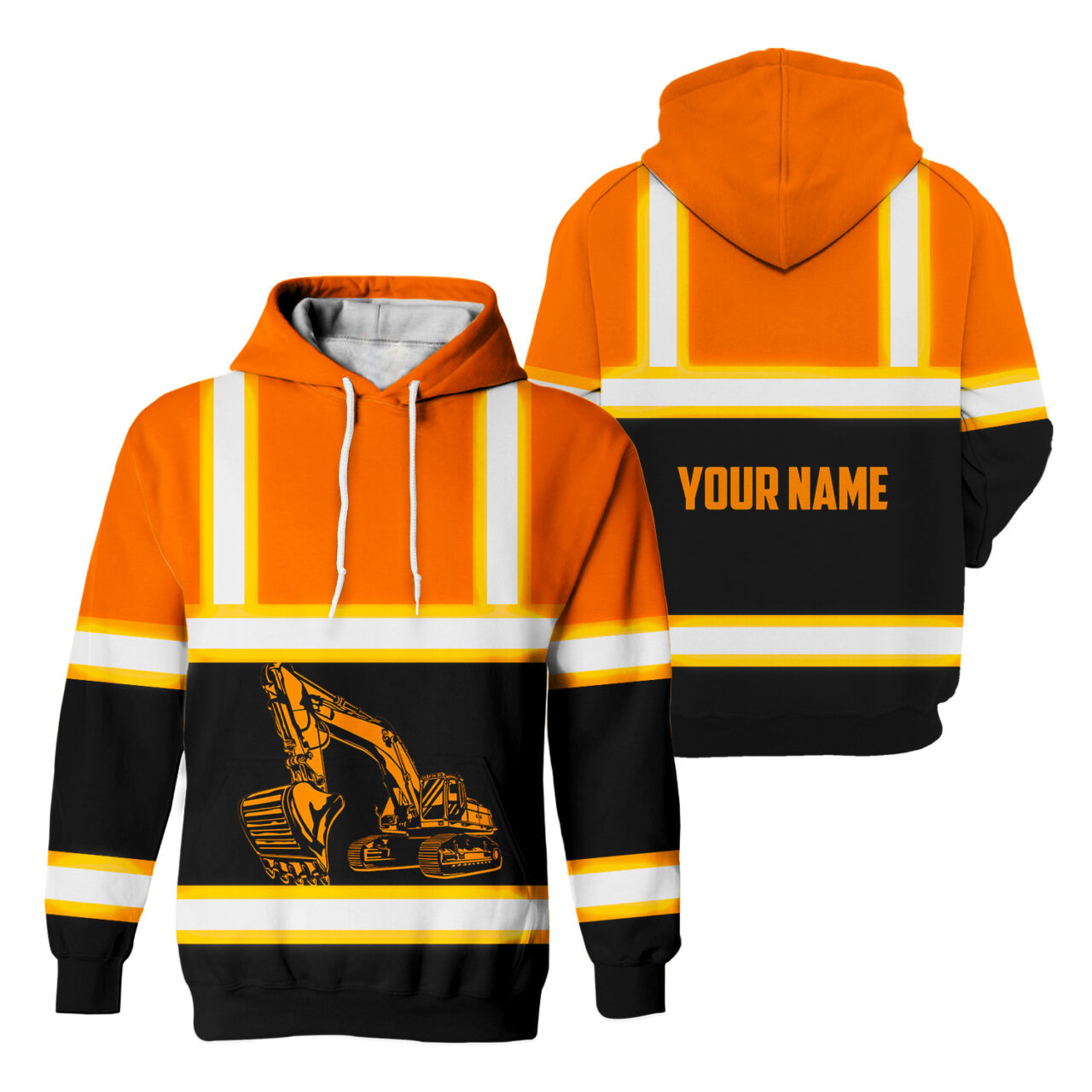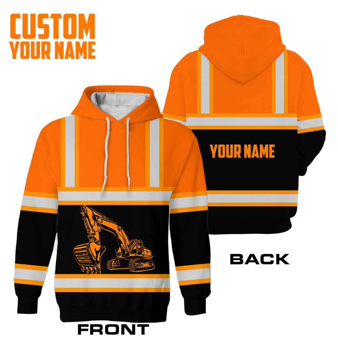 Hi Vis Hoodie Reflective Tapes Orange Excavator Operator Custom Name Safety Workwear For Truckers, Workers, Runners, Cyclists, Patriotic