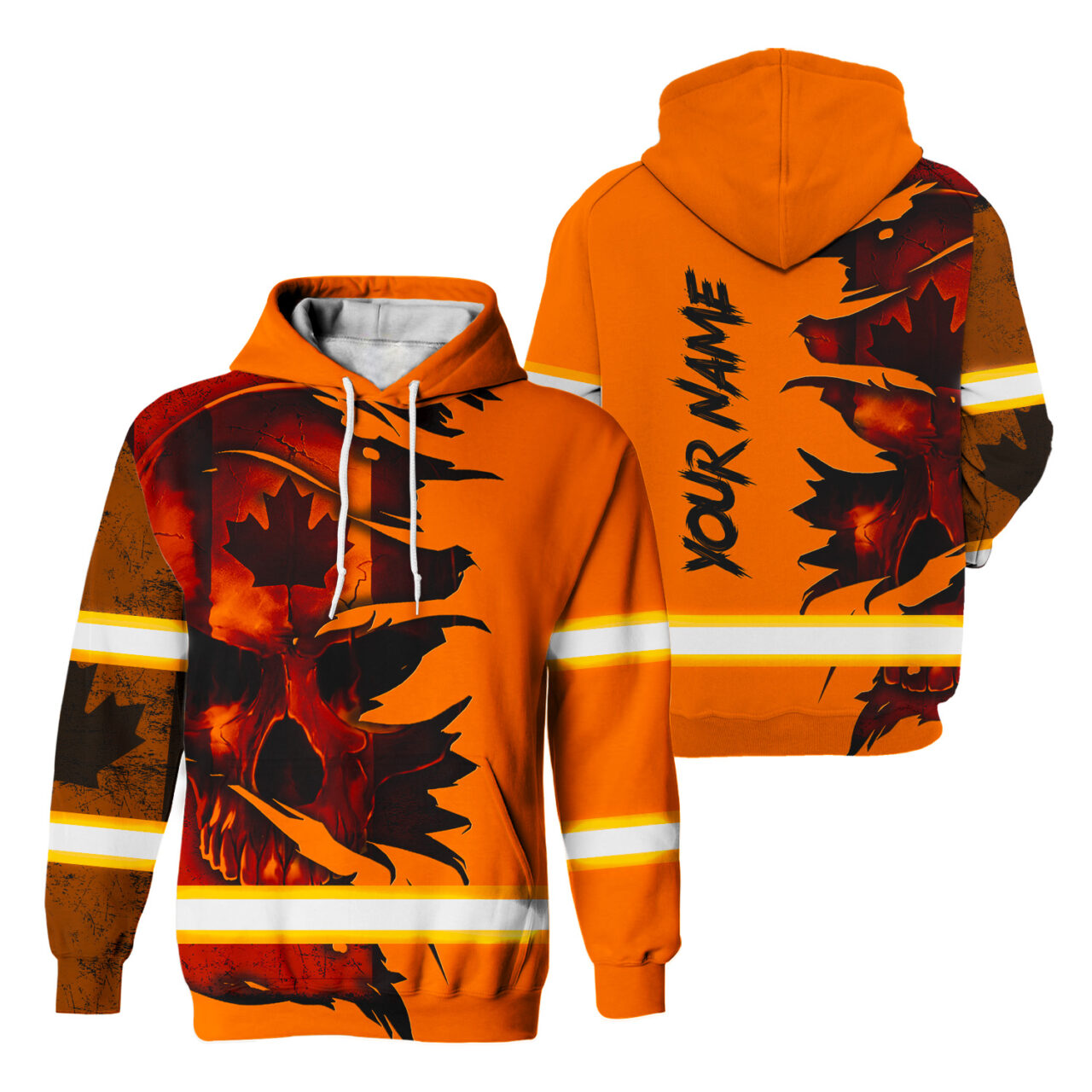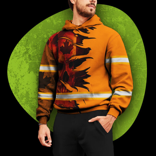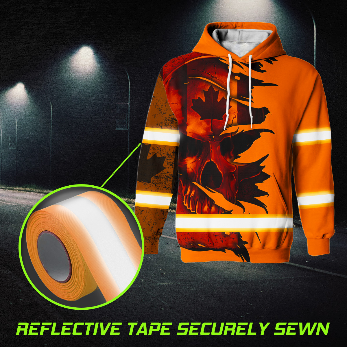 Hi Vis Hoodie Reflective Tapes Orange Neon Skull Canada Flag Scratch Custom Name Safety Workwear For Workers, Runners, Cyclists, Patriotic