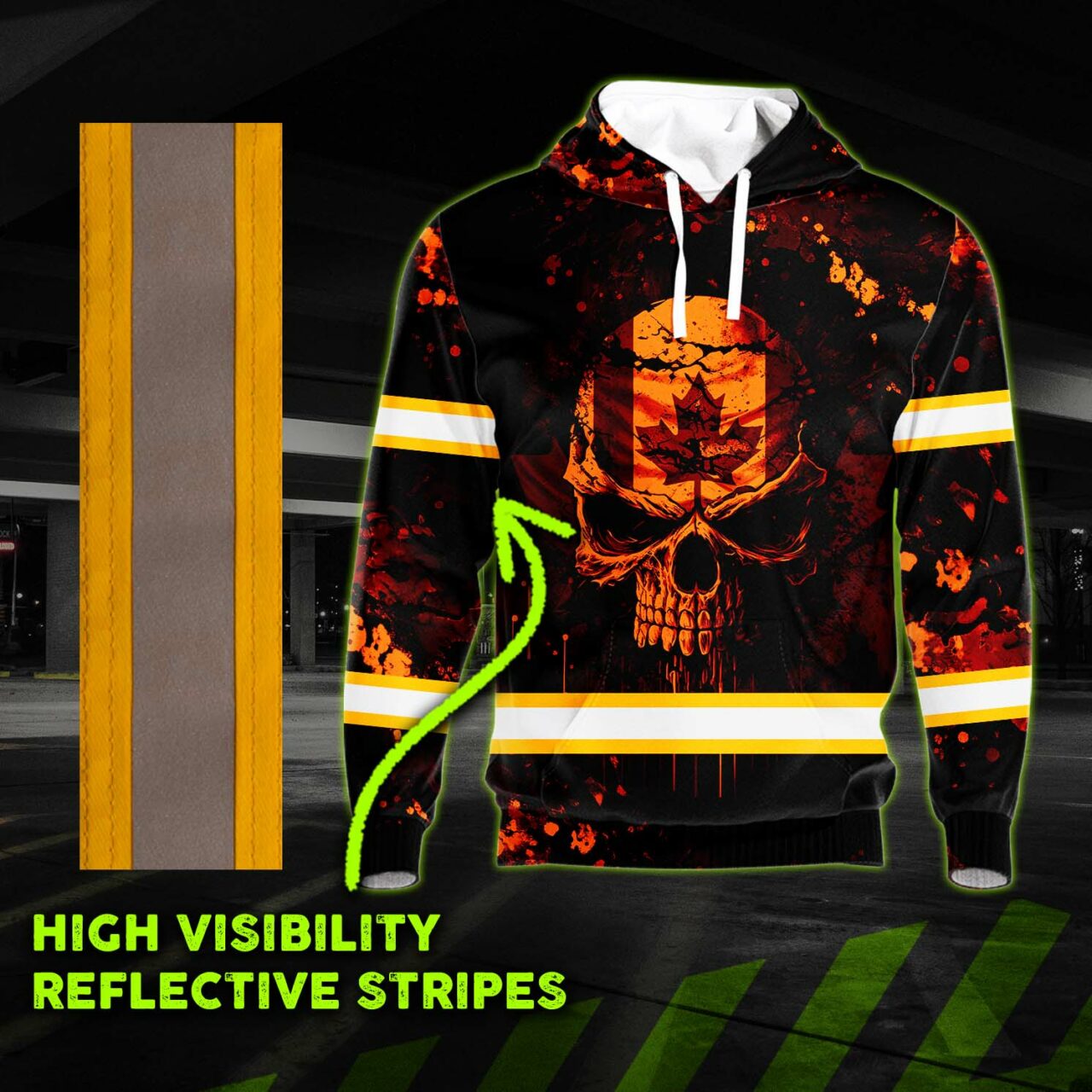 Categories: Hi Vis Canadian Products, Hi Vis Hoodies, Hi Vis Skull Products