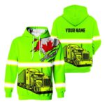 Hi Vis Hoodie Reflective Tapes Green Gradient Semi Truck Driver Canada