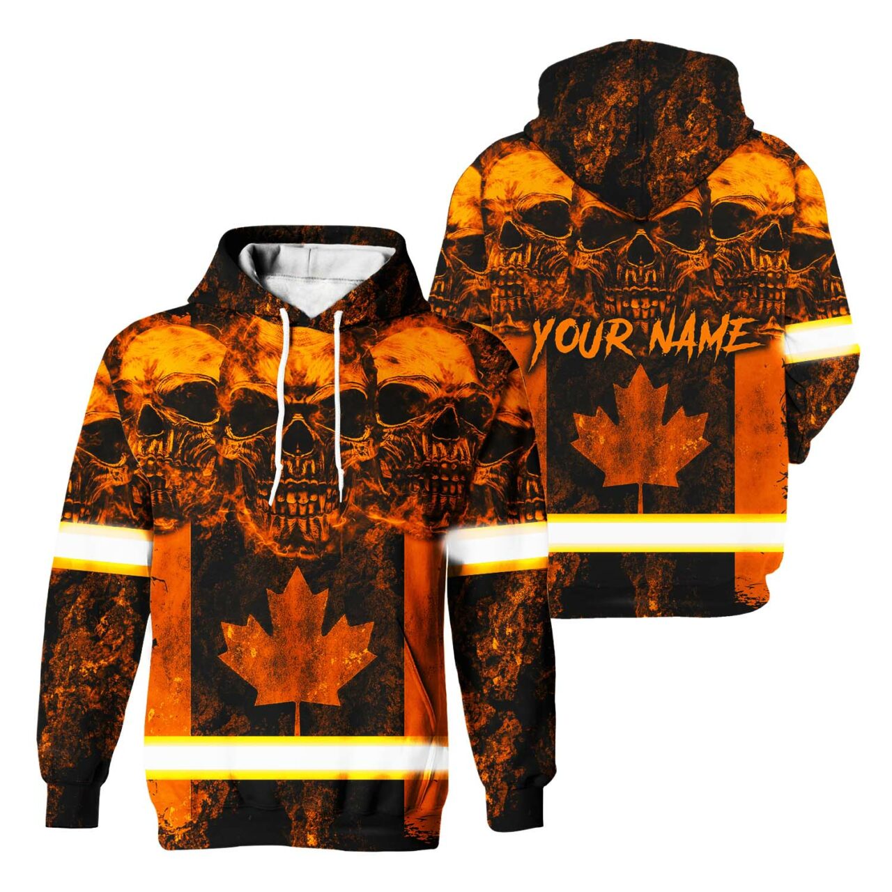 Be the first to review “Hi Vis Hoodie Reflective Tapes Orange Skull Canada Flag Safety”