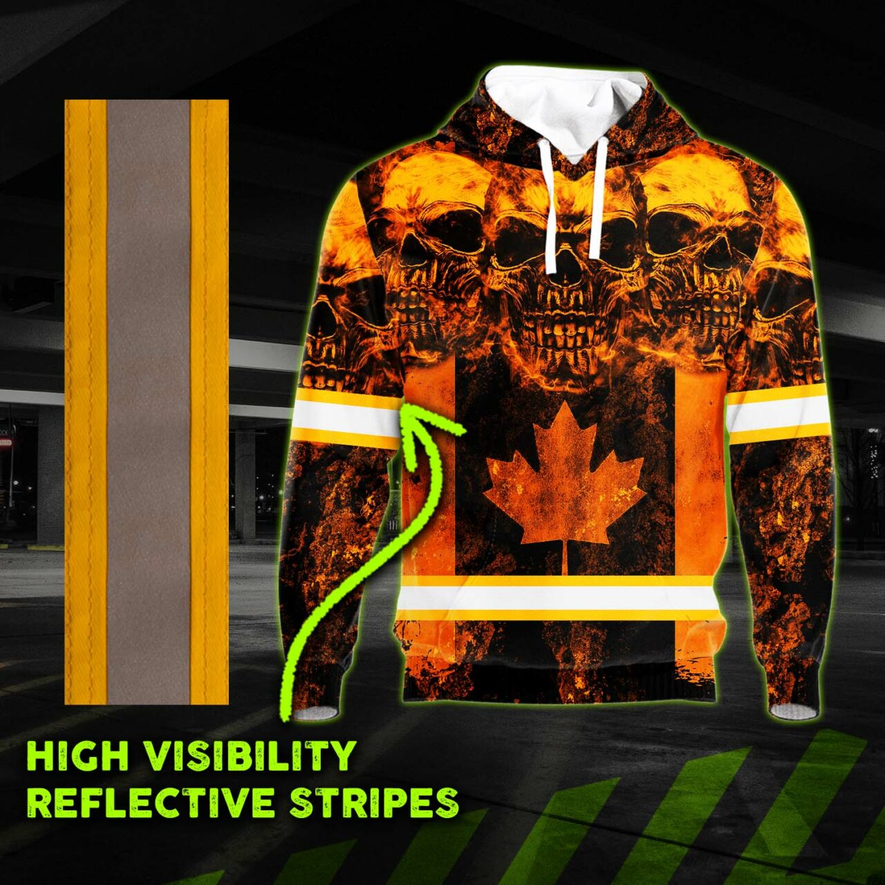 Hi Vis Hoodie Reflective Tapes Orange Skull Canada Flag Safety