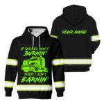 Hi Vis Hoodie Reflective Tapes Diesel Burnin And Earnin Custom Name Safety Workwear For Trucker, Truck Lovers