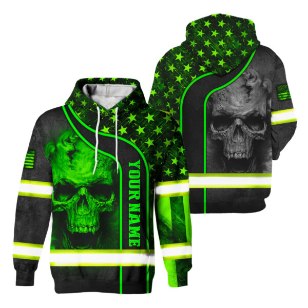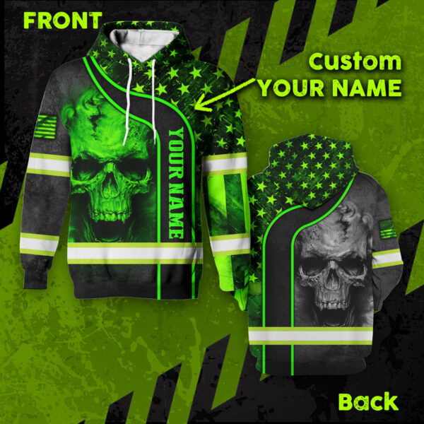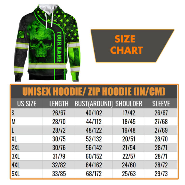 Hi Vis Hoodie Reflective Tapes Orange Skull US Flag Safety Workwear For Workers, Runners, Cyclists, Patriotic