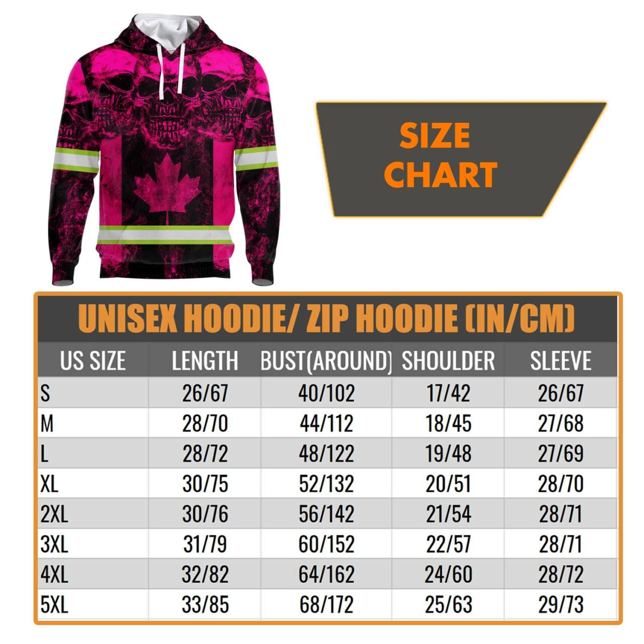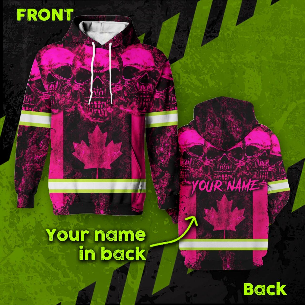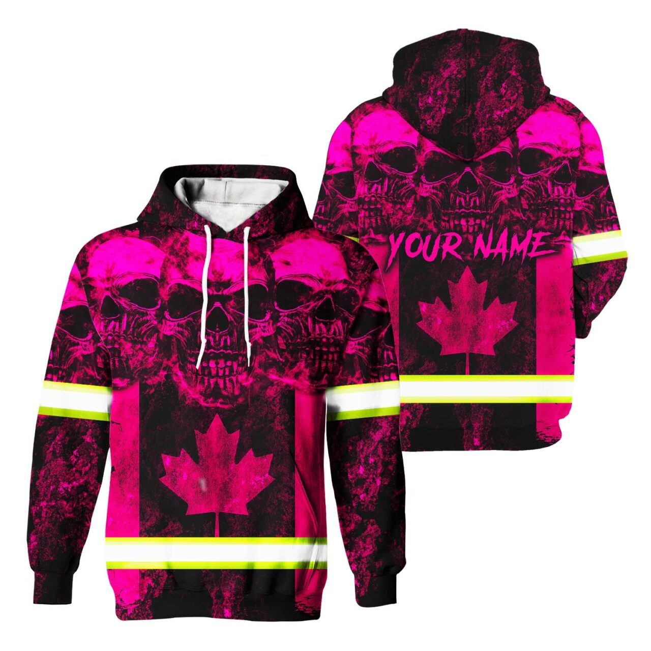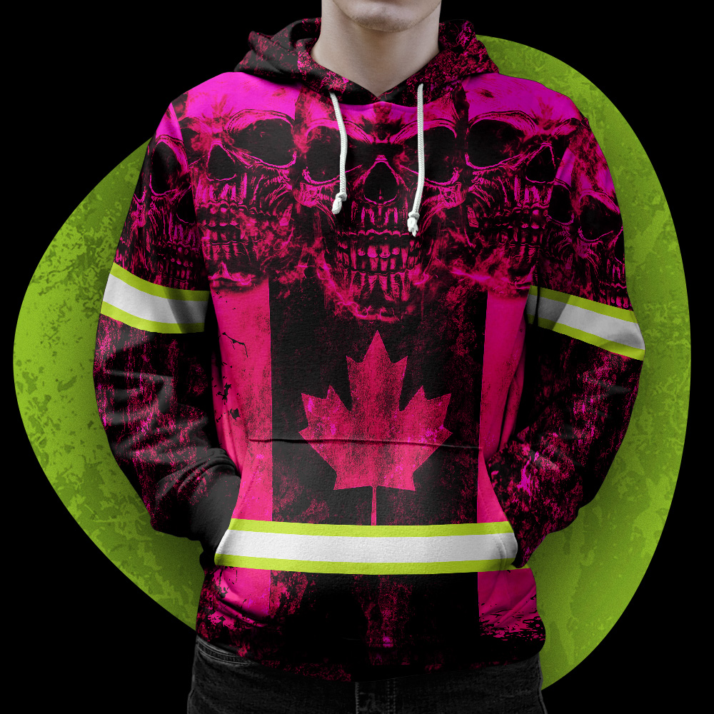 Categories: Hi Vis Canadian Products, Hi Vis Hoodies, Hi Vis Skull Products, Safety Pink Shirts