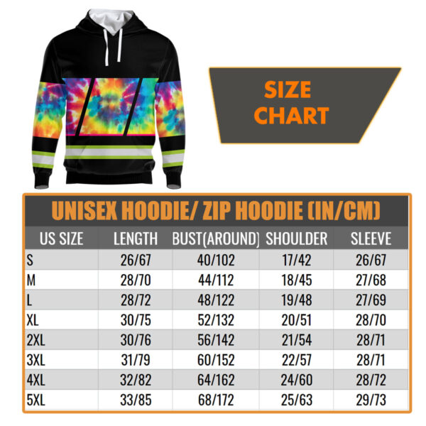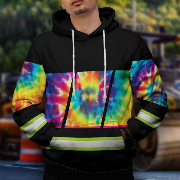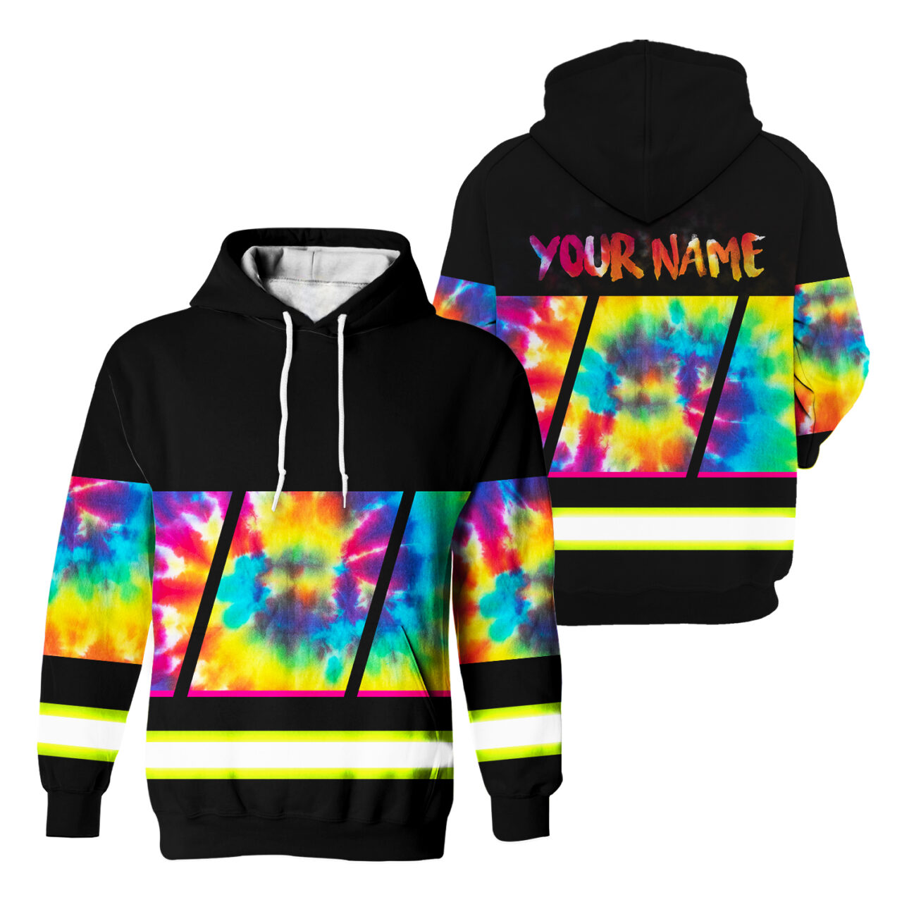Hi Vis Hoodie Reflective Tapes Rainbow Tie Dye Custom Name Safety Workwear For Workers, Runners, Cyclists