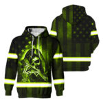 Hi Vis Hoodie Reflective US Flag Black Green Custom Name Safety Workwear