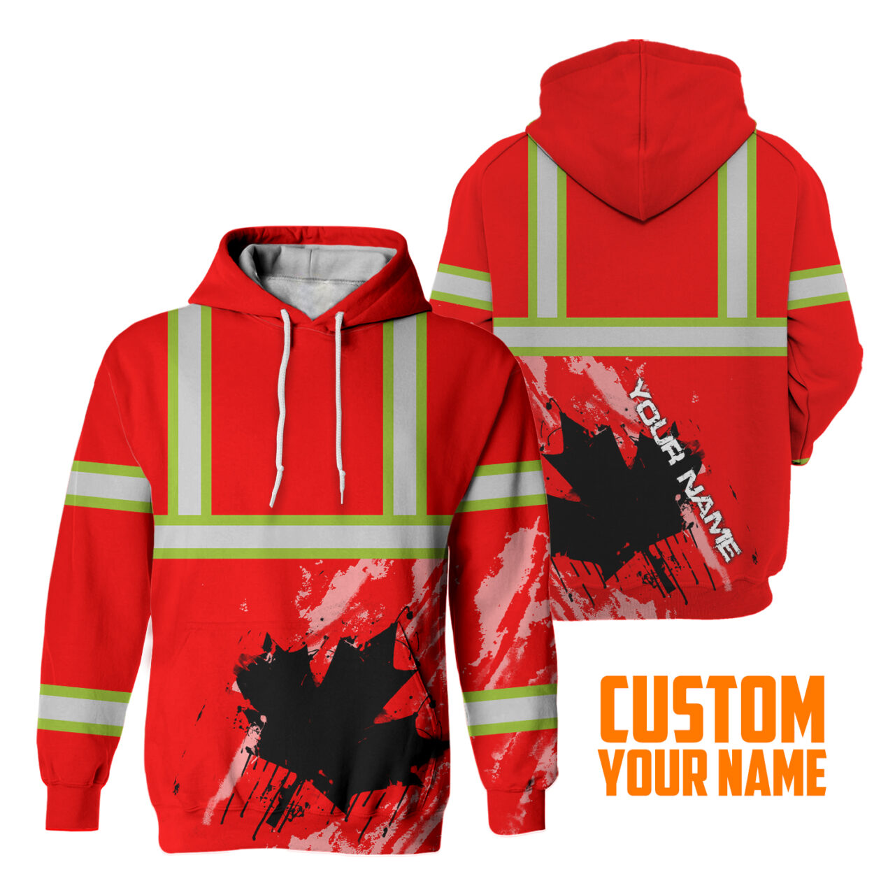 Hi Vis Hoodie Reflective Tapes Red Neon Canada Flag Custom Name quantity
