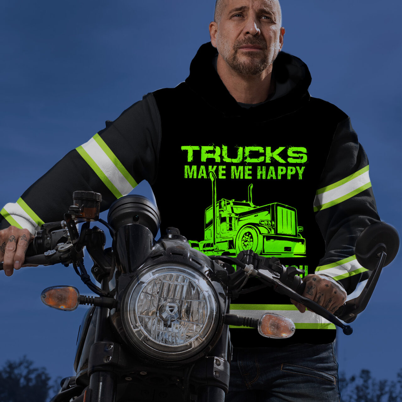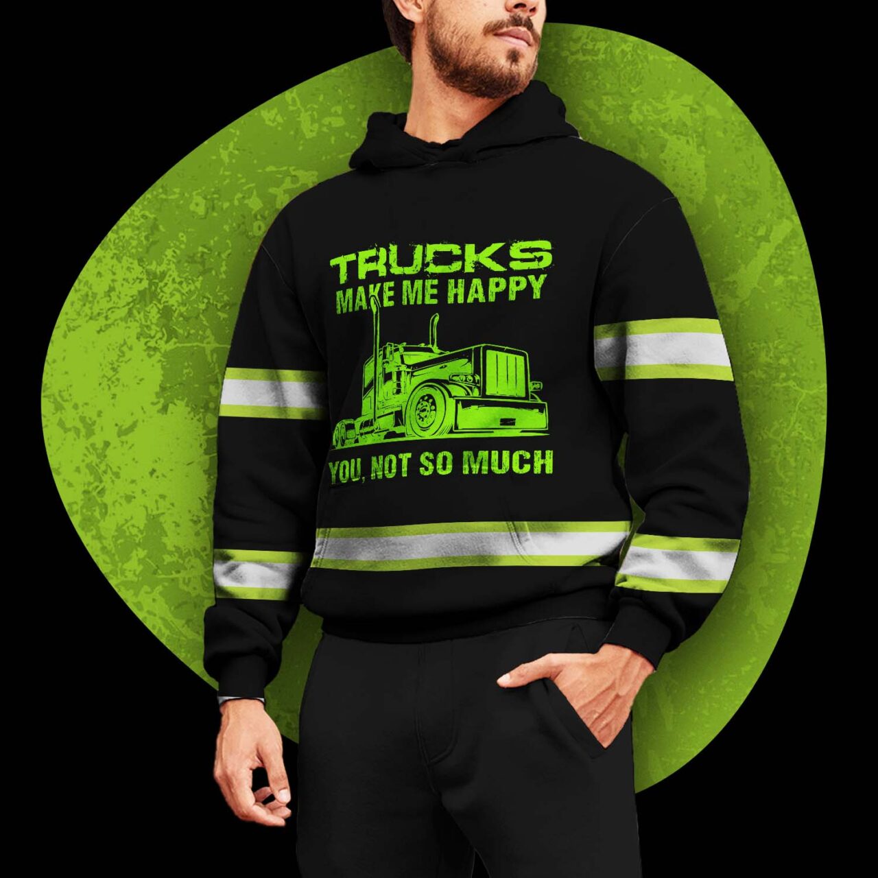 Hi Vis Hoodie Reflective Tapes Trucks Happy You Not