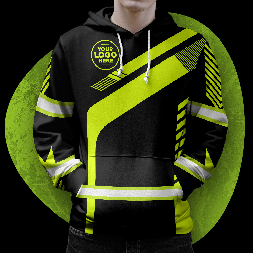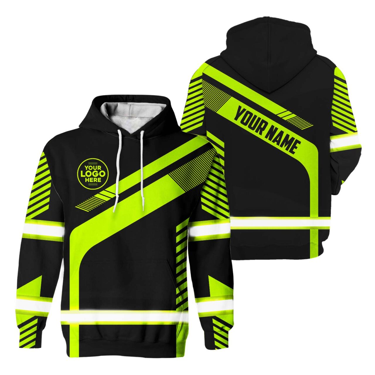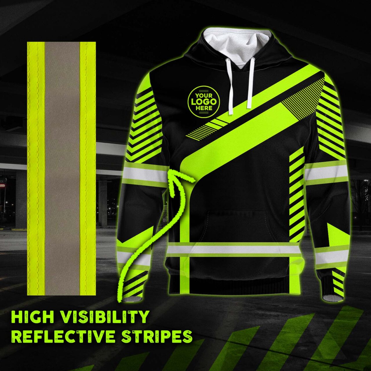Hi Vis Hoodie Reflective Tapes Uniform Green Neon Black 2 Custom