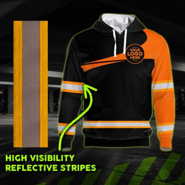 Hi Vis Hoodie Reflective Tapes Uniform Orange Neon Black Custom