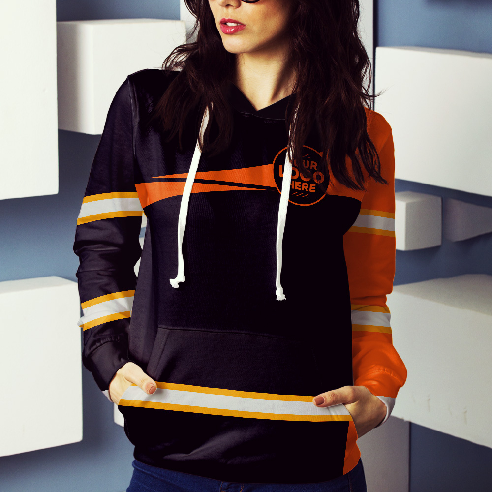 Be the first to review “Hi Vis Hoodie Reflective Tapes Uniform Orange Neon Black Custom”