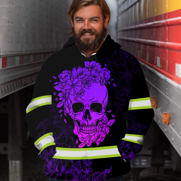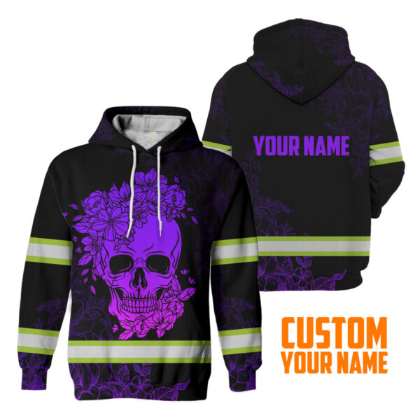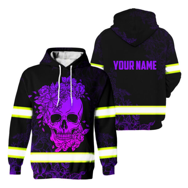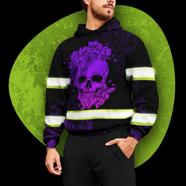 Hi Vis Hoodie Reflective Tapes Violet And Pink Skull Custom Name Safety quantity