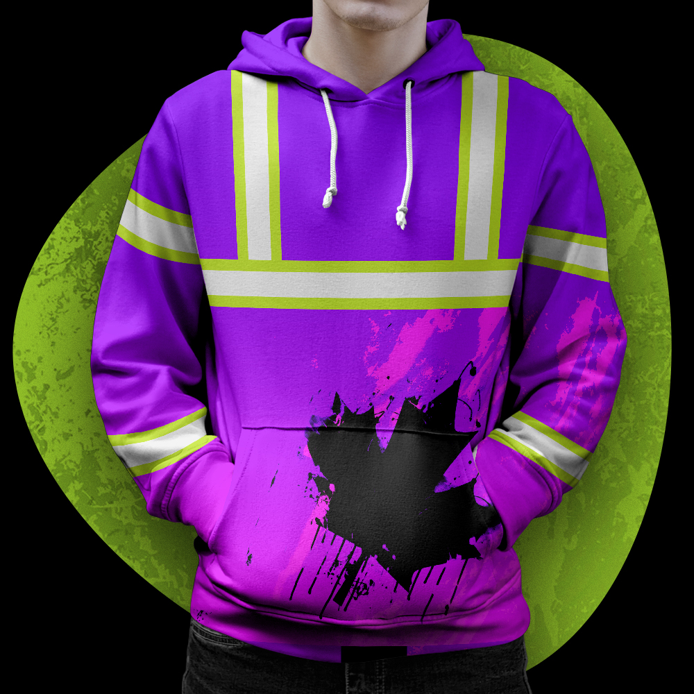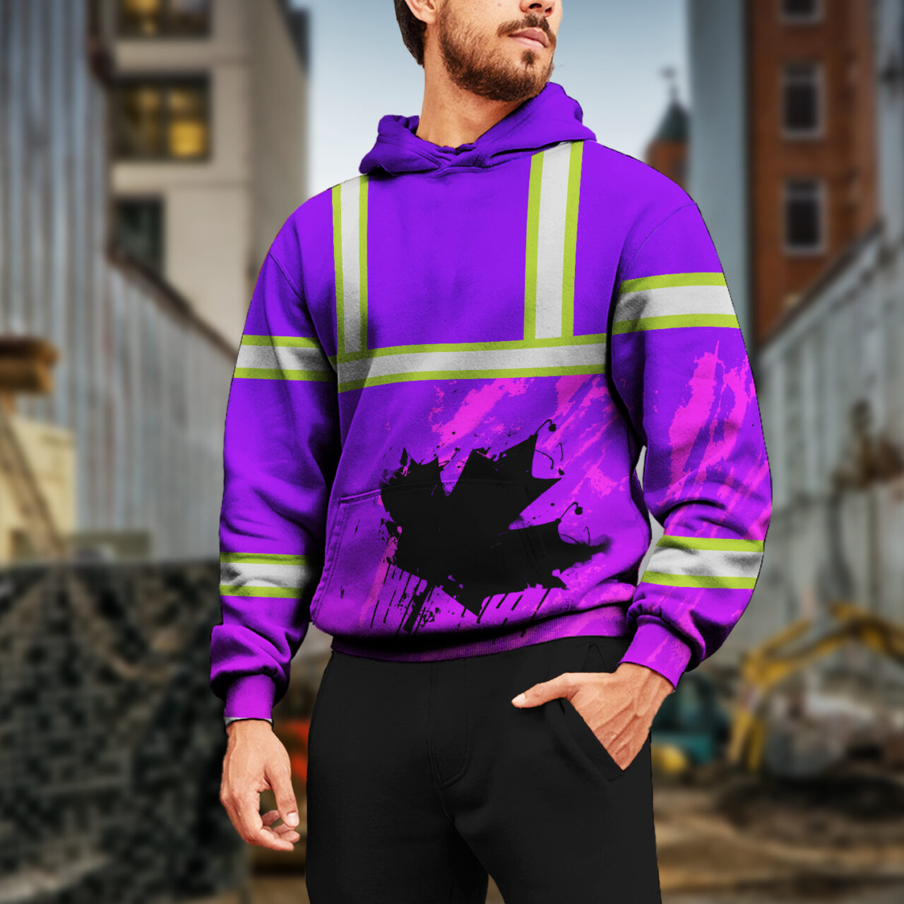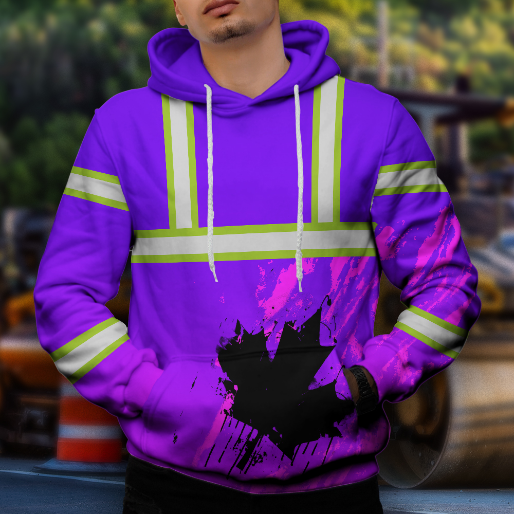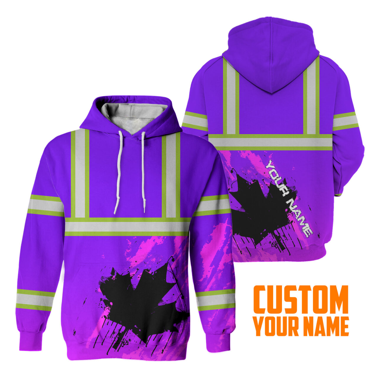Hi Vis Hoodie Reflective Tapes Violet Neon Canada Flag Custom Name