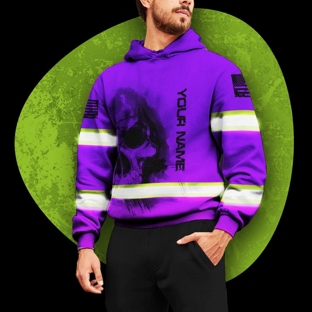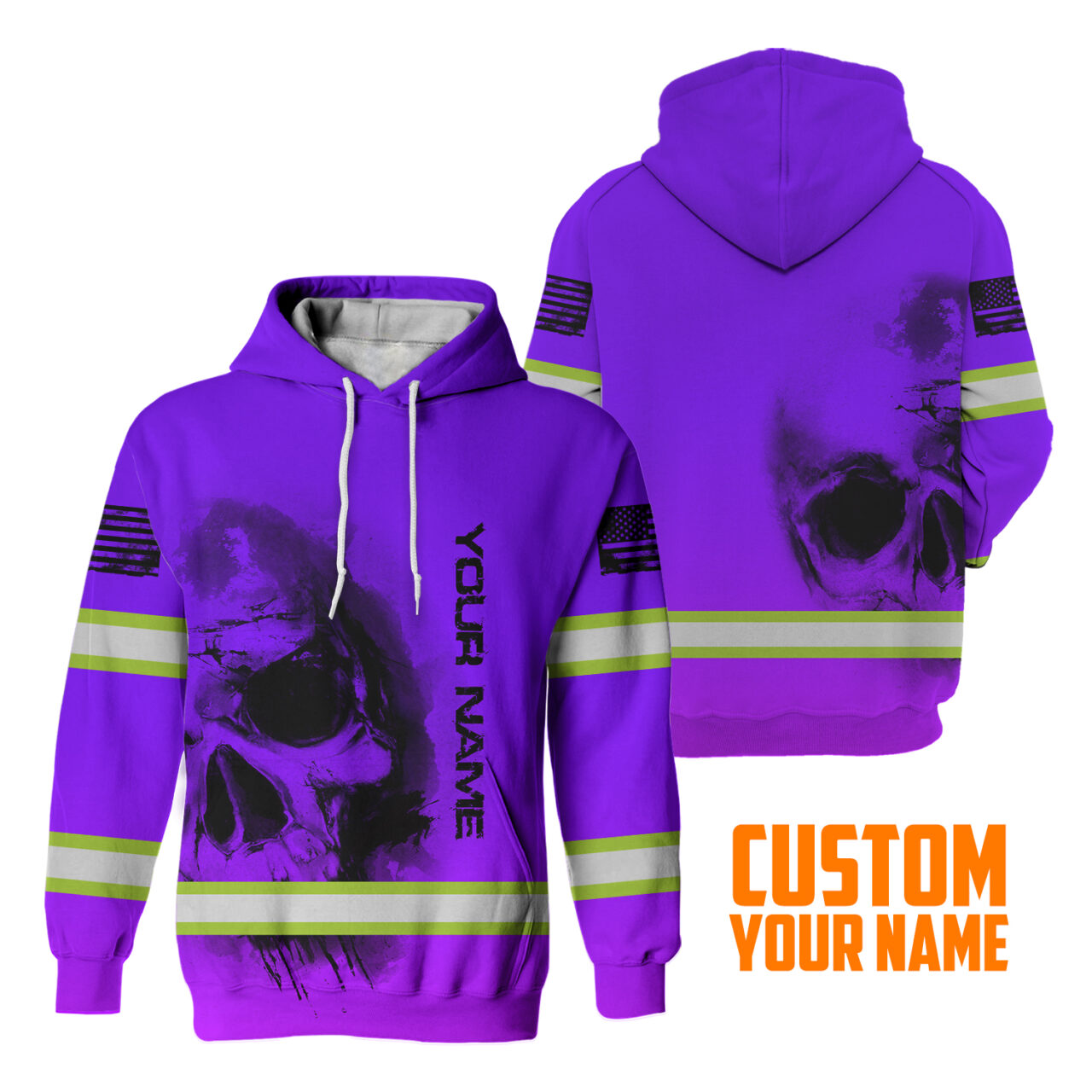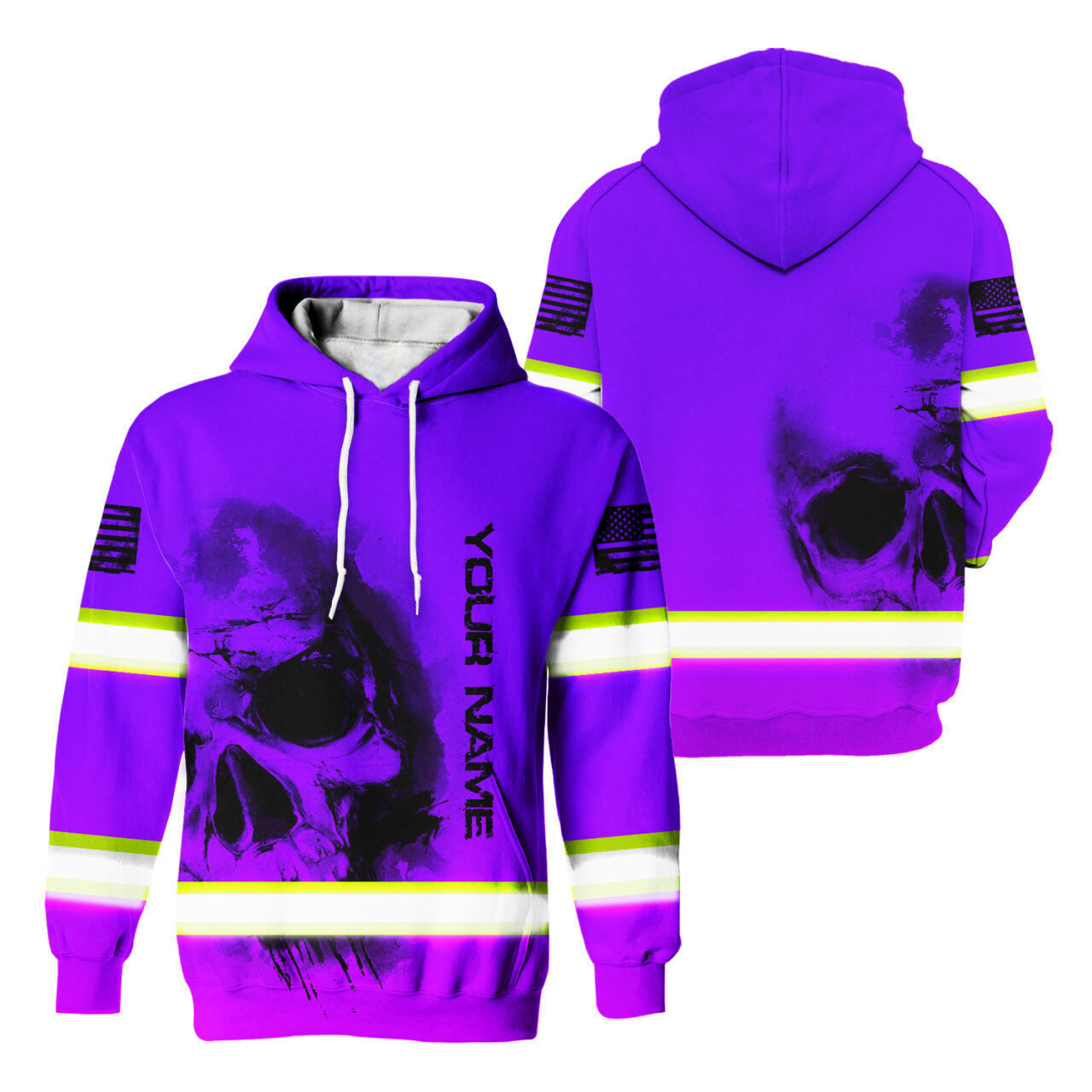 Hi Vis Hoodie Reflective Tapes Violet Neon Flag Skull Custom Name Safety