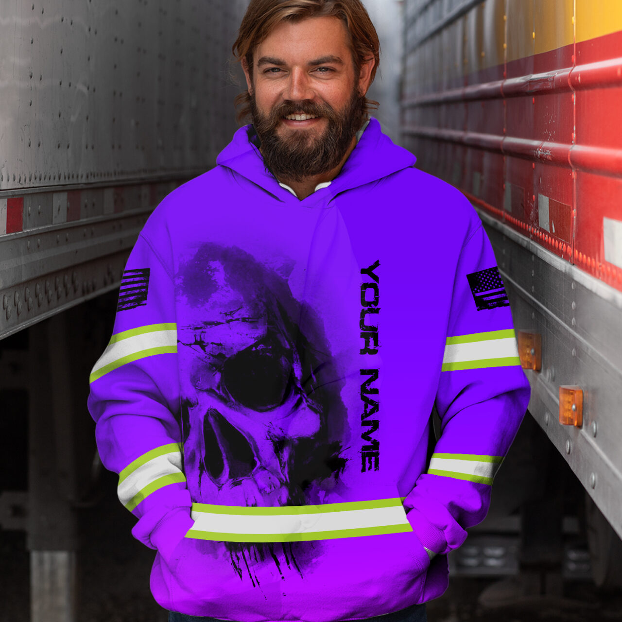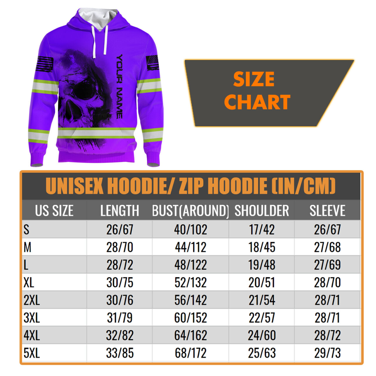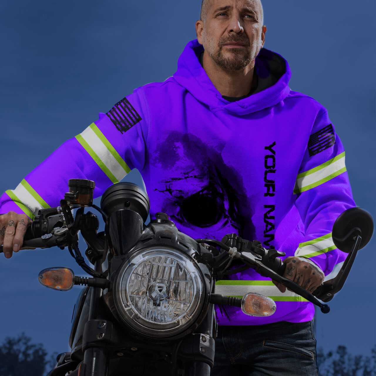 Hi Vis Hoodie Reflective Tapes Violet Neon Flag Skull Custom Name Safety