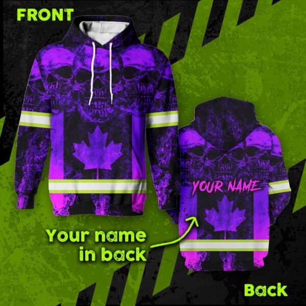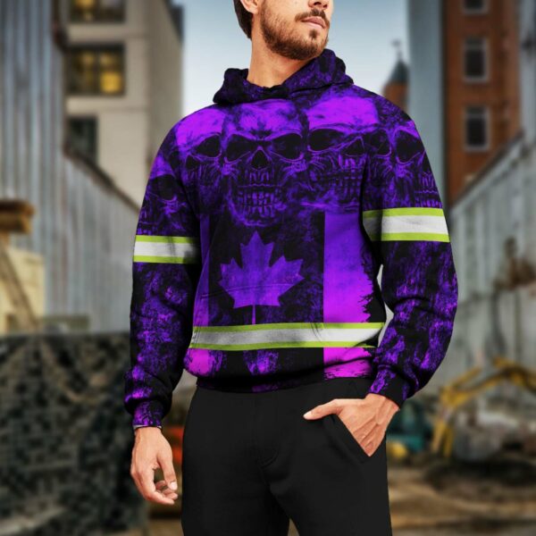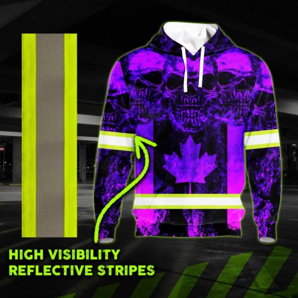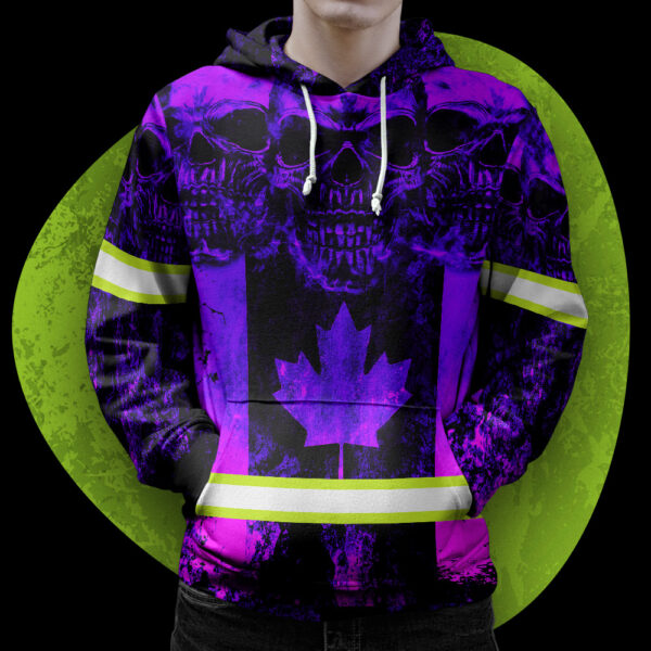 Hi Vis Hoodie Reflective Tapes Violet Neon Skull Canada Flag Safety
