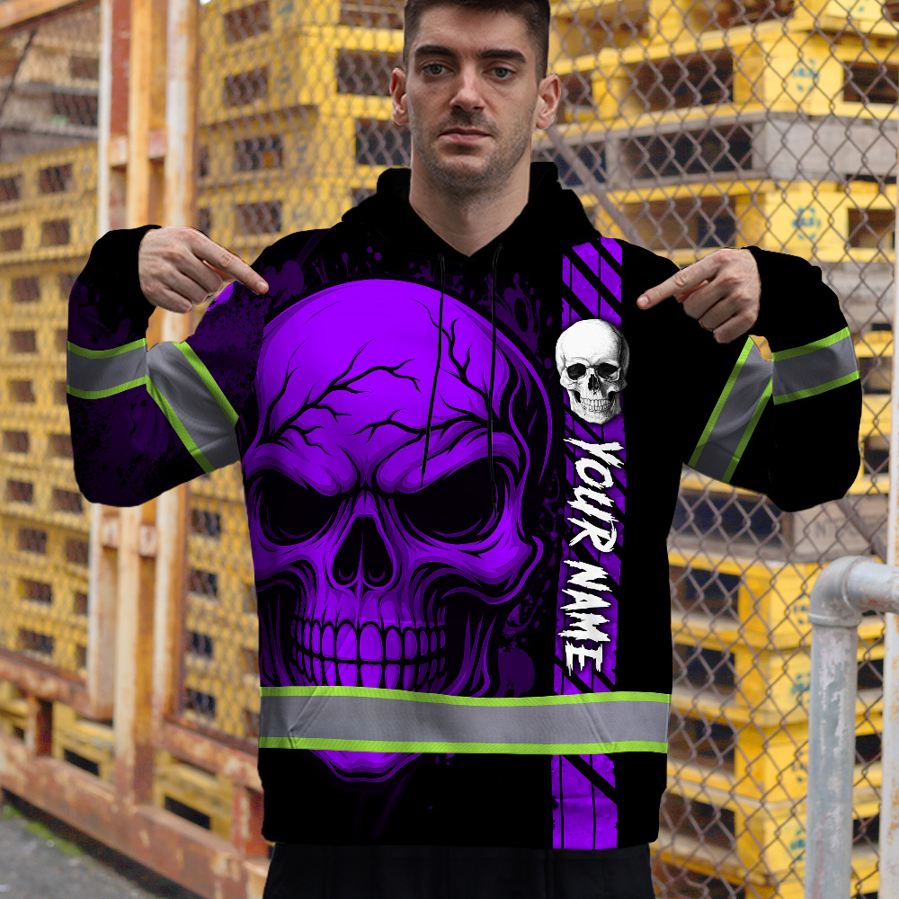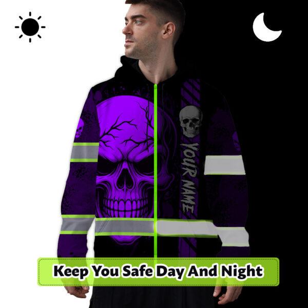Hi Vis Hoodie Reflective Tapes Violet Neon Skull Custom Name