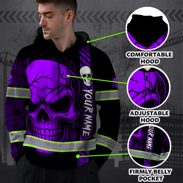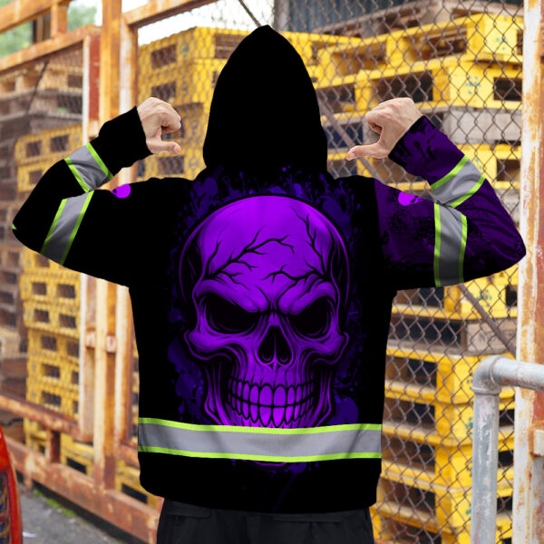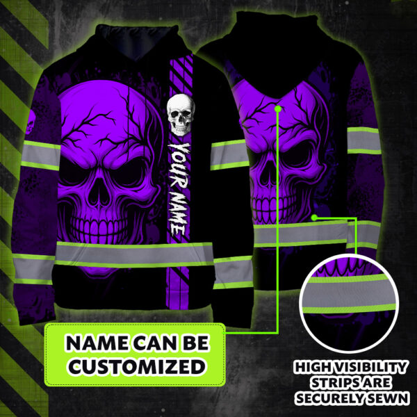 Hi Vis Hoodie Reflective Tapes Violet Neon Skull Custom Name quantity