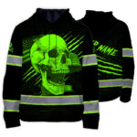 Hi Vis Hoodie Reflective Tapes Green Skull And US Flag